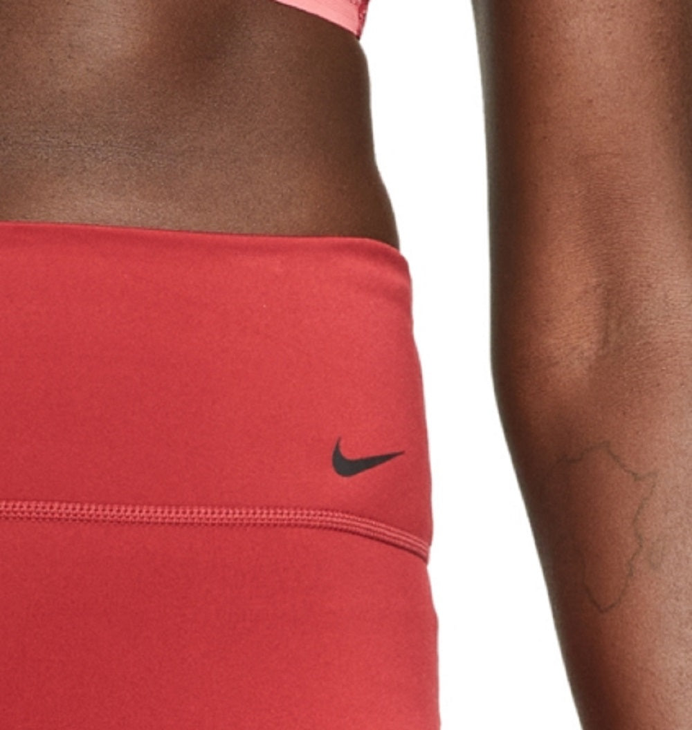 tells the short story on workout style with these classic bike shorts| detailed with a contoured banded waist and concealed pockets.| Mid rise; cropped length; approx. inseam; 7| INSPIRED FOR; Training| Superior Dri-FIT technology offers optimal moisture-wicking| Banded elastic waist; screen print logo; concealed pockets| Polyester/spandex