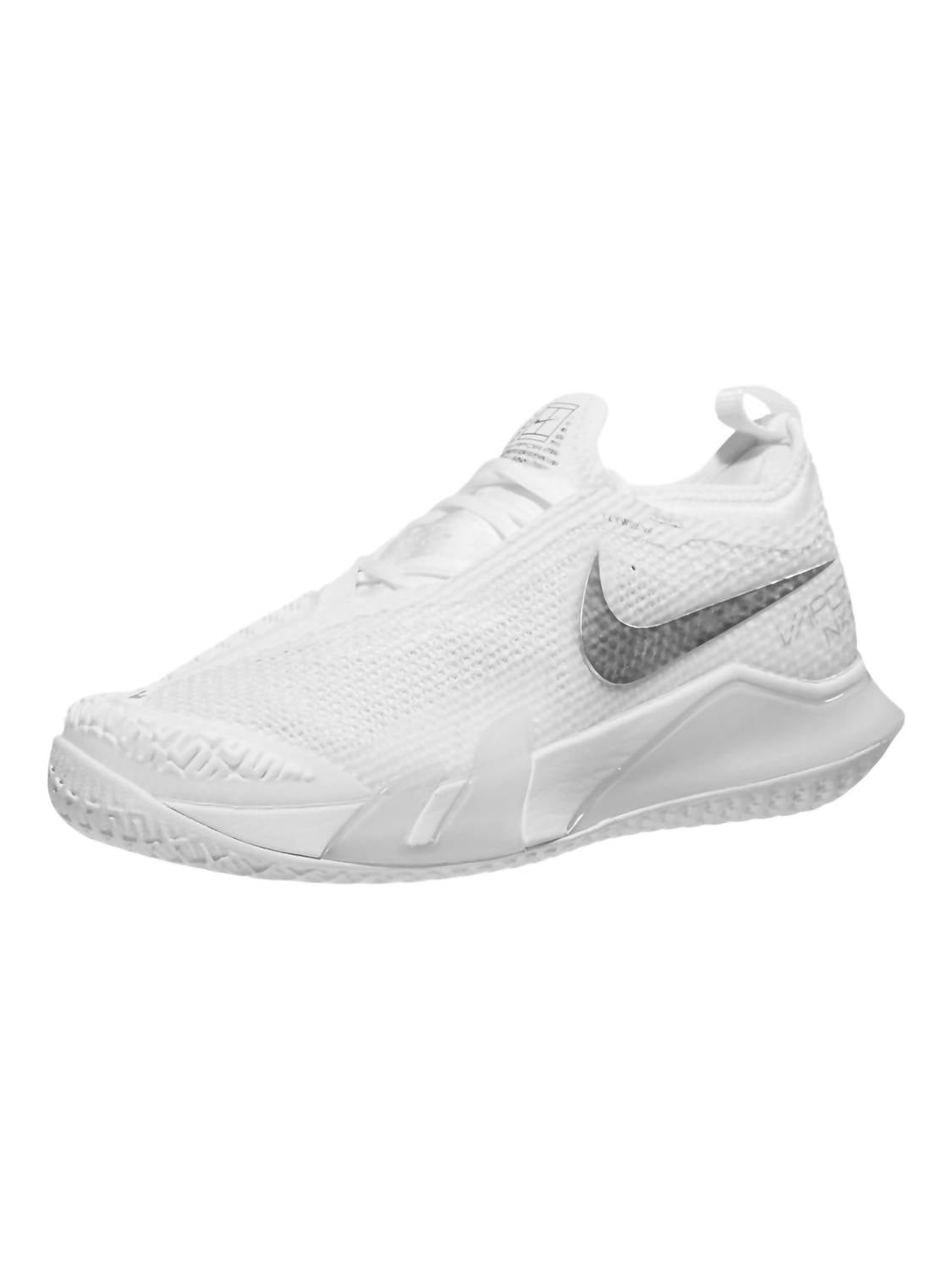 A women's tennis shoe designed for hard court play, featuring a full-length sleeve for a snug, sock-like fit and a stiff frame on the lateral side for enhanced stability during lateral movements. The shoe is constructed with synthetic materials and rubber, providing durability and support.