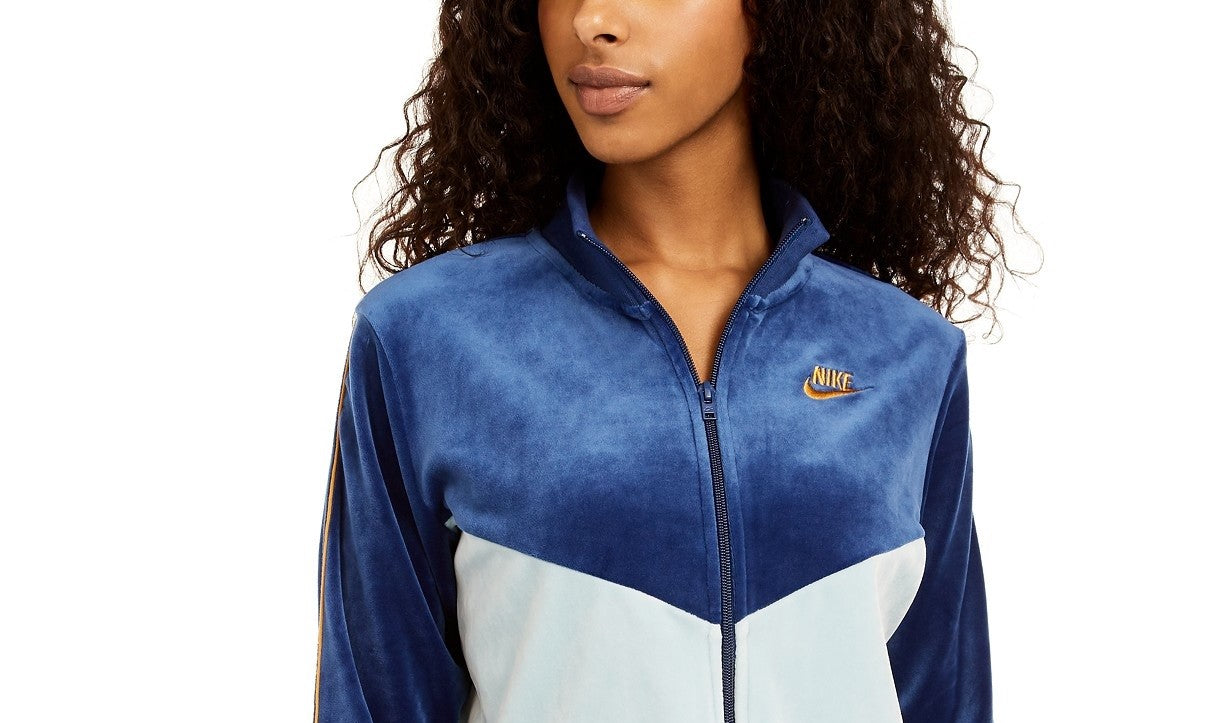 Nike Women's Sportswear Velour Colorblocked Jacket Blue Size Medium