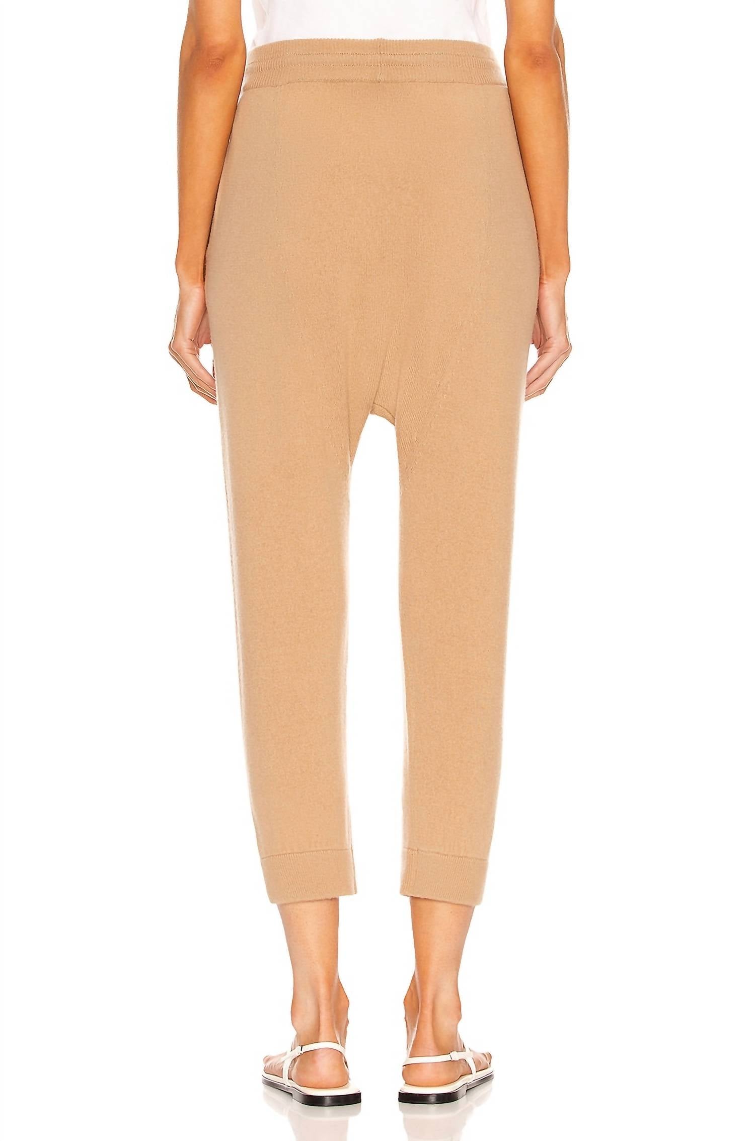 The perfect pant for running around town and looking cool while doing it. These pants are crafted from 100% cashmere and feature an elastic drawstring waist with side slant pockets. The knit fabric is finished with ribbed cuffs and a drop crotch for a relaxed fit. Dry clean only. The model is wearing size S. Size small measurements: inseam 20 inches (50.8 cm), rise 15 inches (38.1 cm).