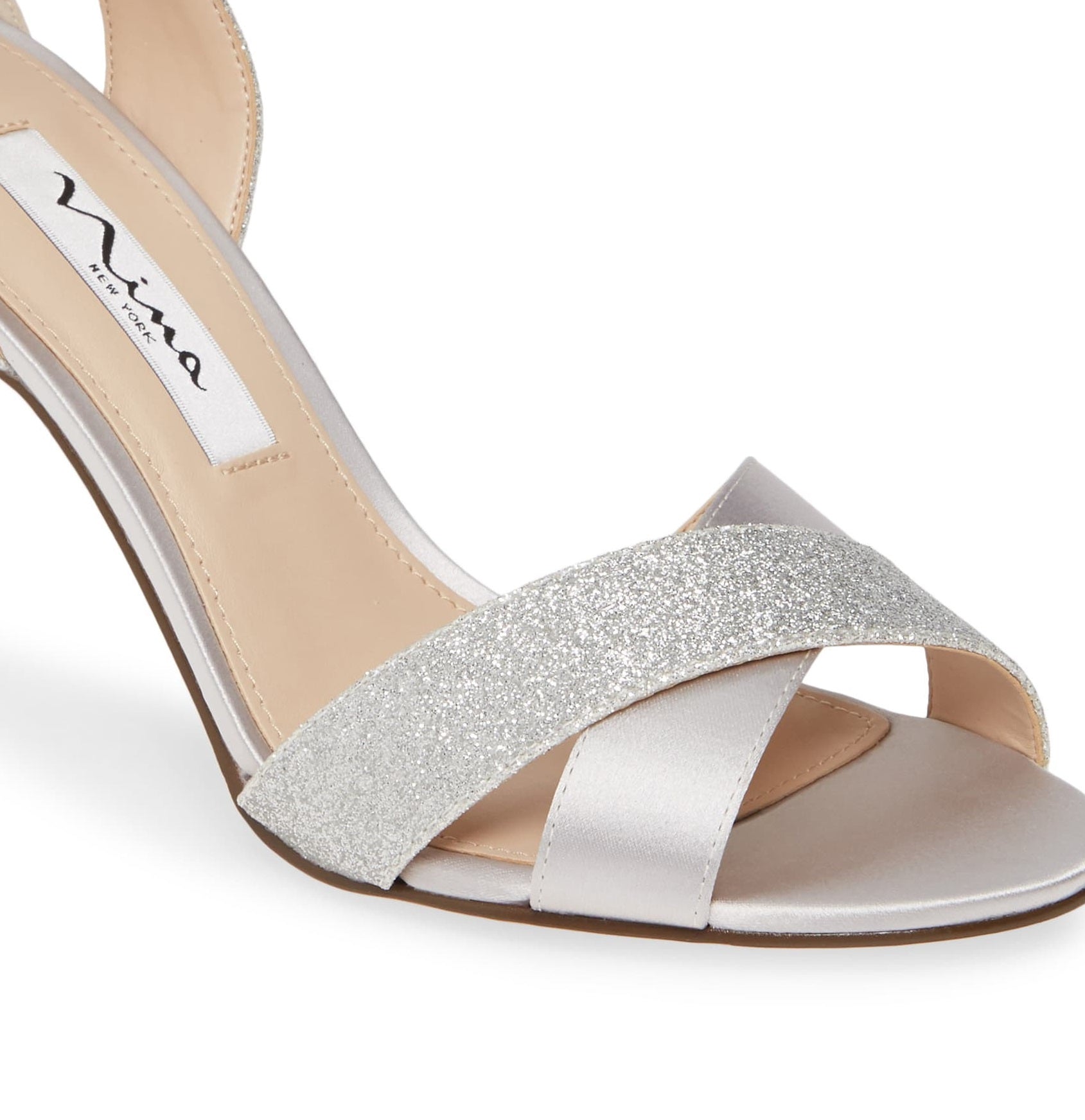 An ultra-svelte strap secure your ankle in Nina's Venus| an elegant sandal with criss-cross straps| and glamorous cut-out details at the rear counter. | 3 1/2 stiletto| adjustable ankle strap| padded insole| flexible outsole.