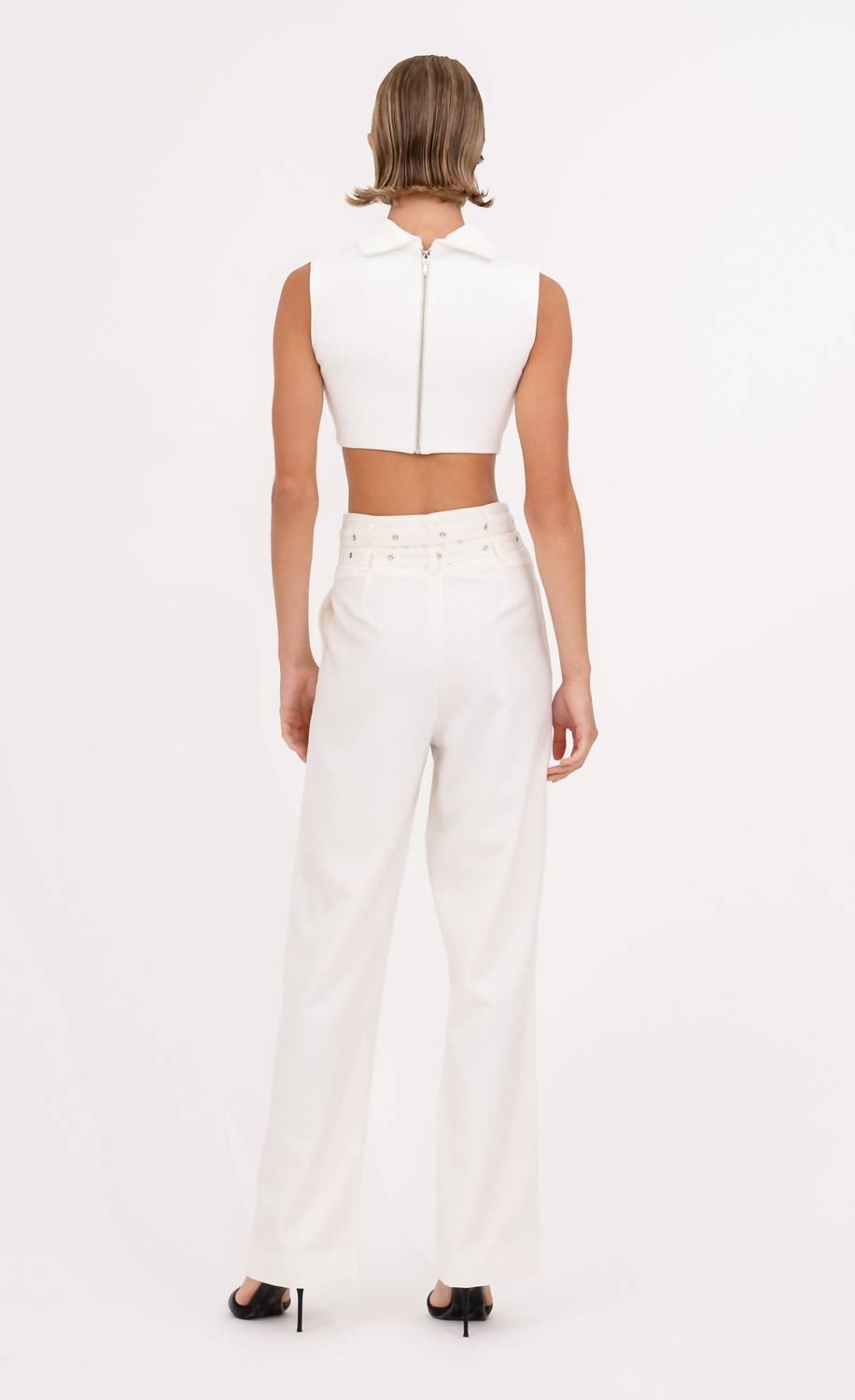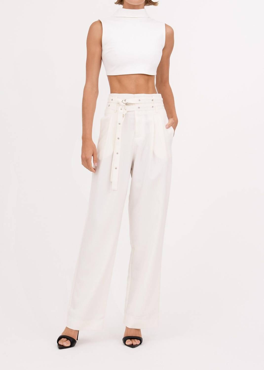 Pair this crop top with your favorite high-waisted jeans or maxi skirt. Introducing the Ryland Crop Top by Nonchalant Label, a quintessential summer piece in elegant ivory. This sleeveless crop features a chic folded-over turtleneck design and a convenient back zip closure, perfect for any stylish engagement or Thanksgiving event. Its solid pattern and activewear suitability ensure both comfort and versatile styling. Embrace the quiet luxury trend with this must-have addition to your wardrobe.