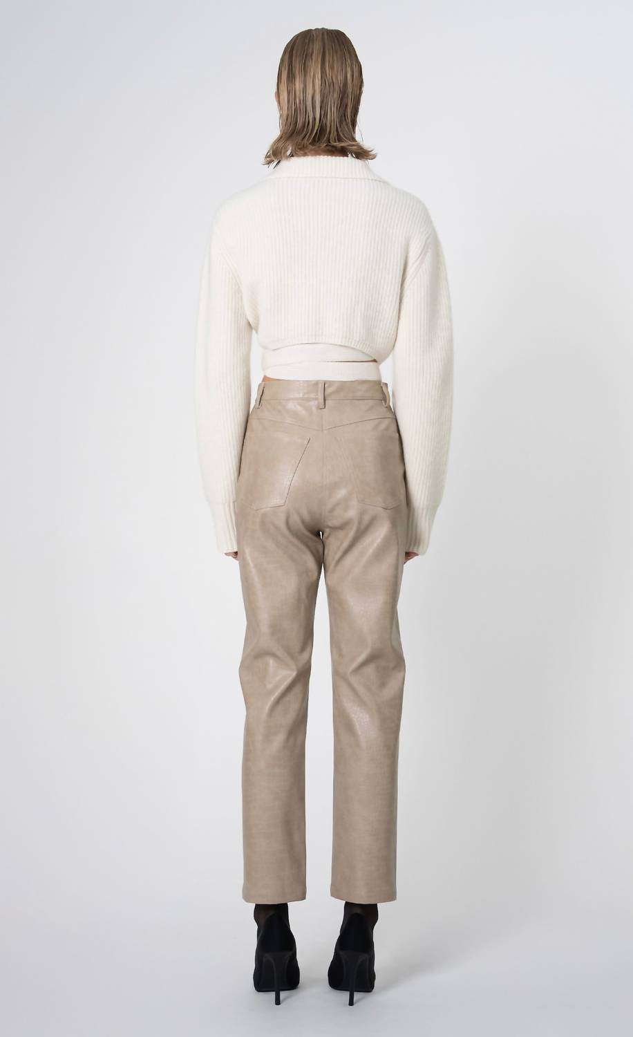 Stay on-trend and showcase your impeccable taste with these adaptable and stylish cropped pants. The perfect length to wear with your favorite mules. You'll love the fit! Introducing the Maris High Waisted Pants by NONCHALANTLABEL, a perfect blend of 90s fashion and modern chic in taupe. These snake-print trousers, tailored in a high-waisted, slim fit, offer a textured flair with a sleek straight leg that ends at the ankle. Closure Type: Button closure. Care Instructions: Dry clean only. Ideal for an elevated dinner party look this fall, it's suggested to size up if a more relaxed fit is desired. Model wears size small. Perfect for adding subtle sophistication and texture to your New Year's Eve ensemble.