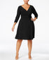 NY Collection Women's Plus Ruched A Line Dress Black Size 3X