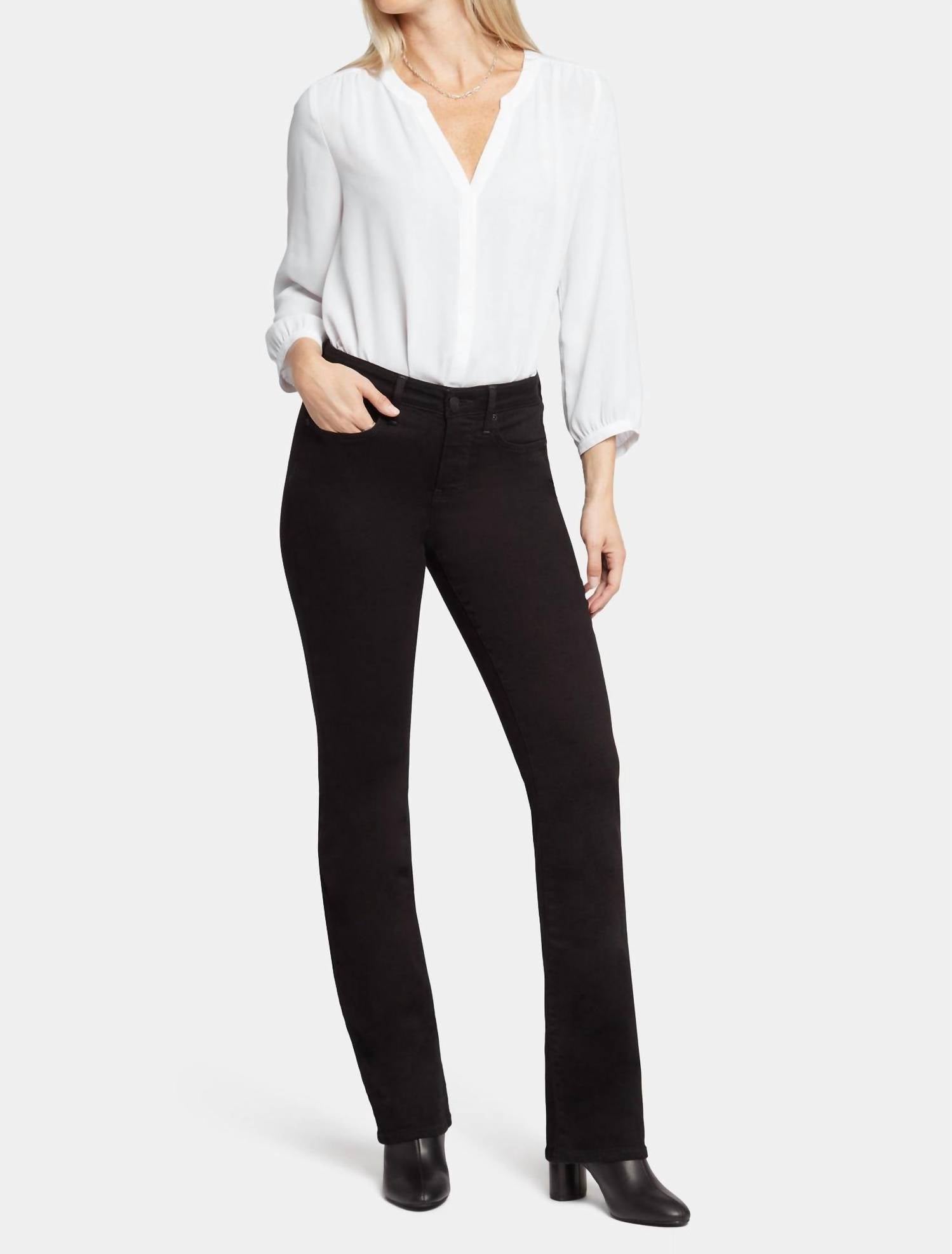 Just add boots! Designed with a high-rise waist and a flattering bootcut leg, these jeans offer the perfect blend of comfort and style. Featuring a solid pattern with pockets, the jeans secure with a button closure, making them both practical and chic. Care instructions suggest machine washing and laying flat to dry for best results. 91% Cotton, 7% Elastomultiester, 2% Lycra® Elastane.