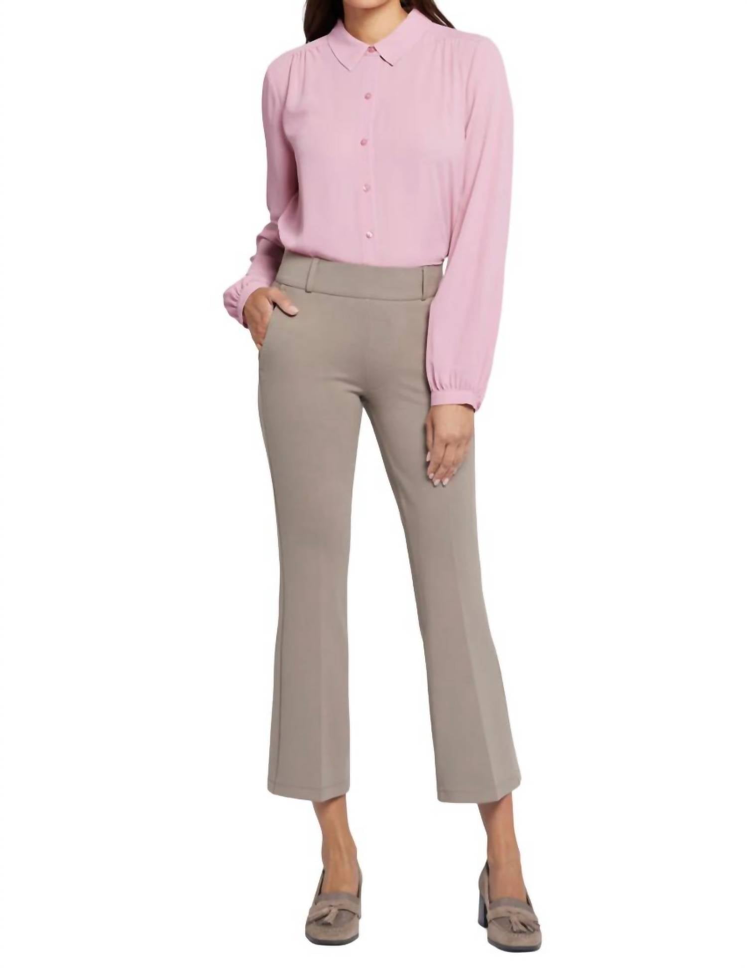 Features belt loops. Back darts. Front slash pockets. Faux back welt pockets. Pull-on waistband. 27" Inseam. 9.75" Front rise. 15.25" Back rise. 69% Viscose, 26% Nylon, 5% Elastane; White Elastane: 68% Viscose, 28% Nylon, 4% Elastane.