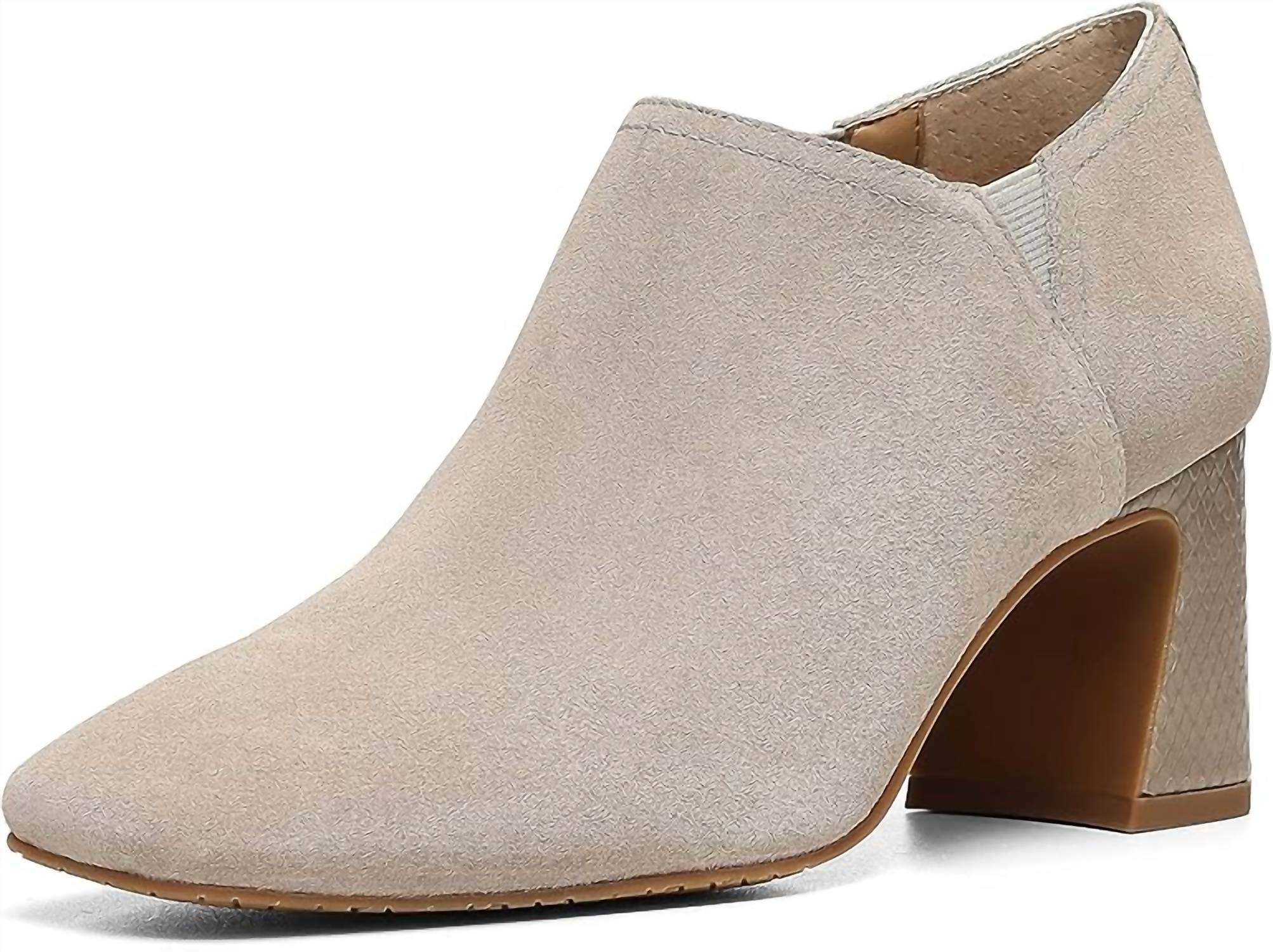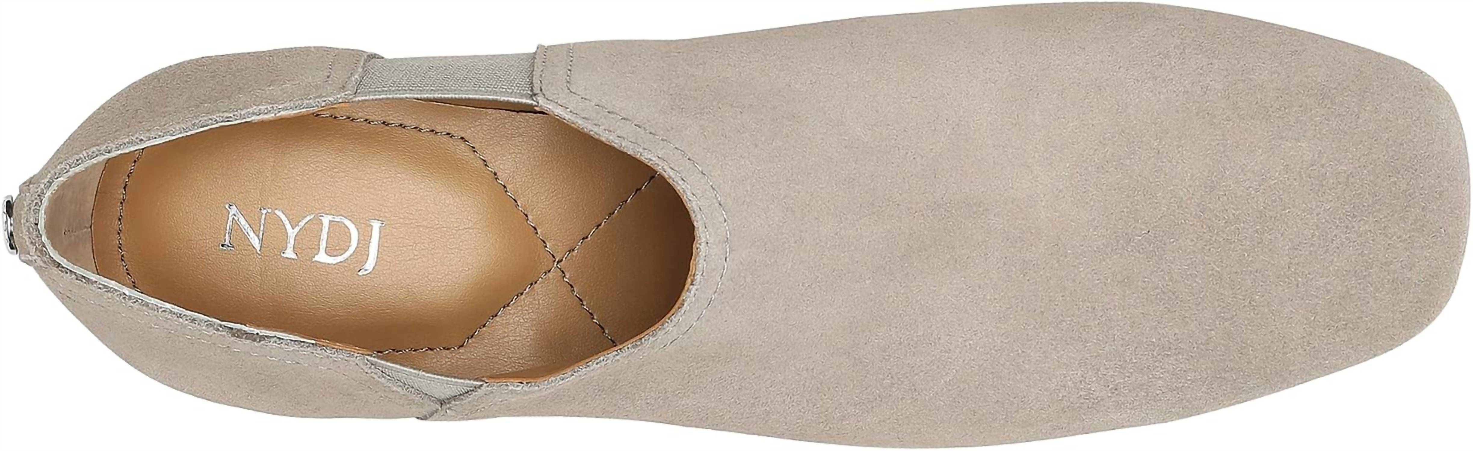 Say hello to the perfect, most versatile boot. The ankle height makes this style easily transition from day to night. Wear them with your favorite skinny jeans and tee for a more laid back look, or pair them with your favorite mini dress and jacket for a night out on the town. Step into effortless style with the Women Catracs Booties from NYDJ. These grey ankle booties feature a soft suede upper, complemented by side holes for easy on and off access and a round toe shape. Designed with a rubber sole and a chic conical heel, they offer both comfort and a modern silhouette. Perfect for adult women, these shoes are a versatile addition to any wardrobe.