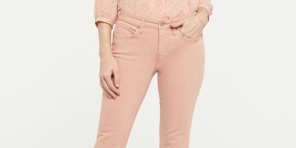 NYDJ's straight-leg jeans with an ankle length keep you casual| polished and comfortable any day of the week.| Approx. inseam; 27| Mid rise; front; approx. 9-3/4; straight leg| Zipper and button fly; belt loops| Cotton/polyester/viscose/elastane| Machine washable