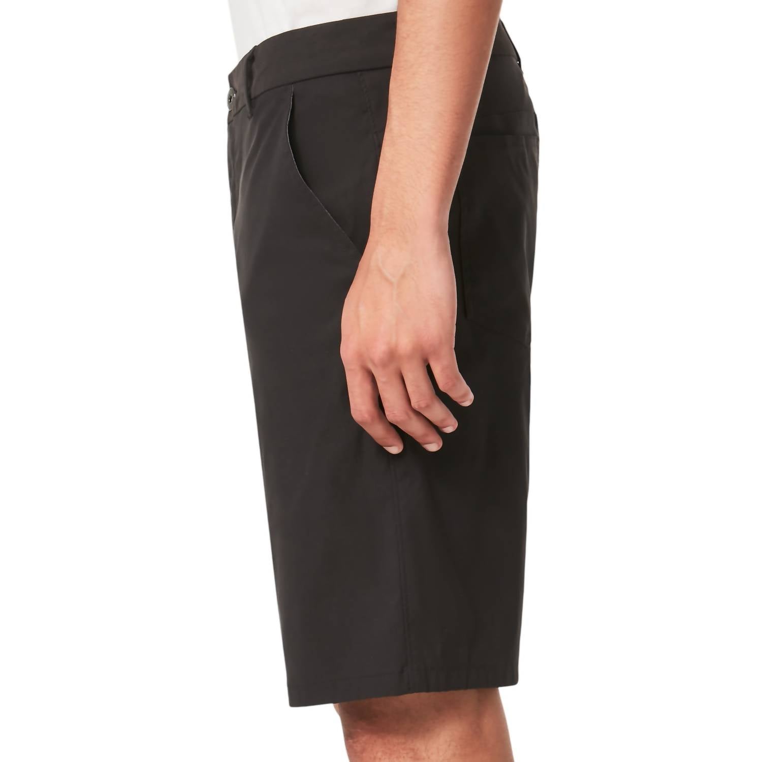Introducing the Men's Perf 5 Utility Short by Oakley, designed for versatility and performance. Crafted in a blackout color with a nylon blend of 94% nylon and 6% spandex, these shorts offer water repellency and 2-way stretch for exceptional comfort. Featuring a one-button waistband, lateral pockets with internal mesh, and an invisible zip pocket on the right leg, these shorts are equipped for functionality. Closure: Zip Closure. Care: Machine Wash.