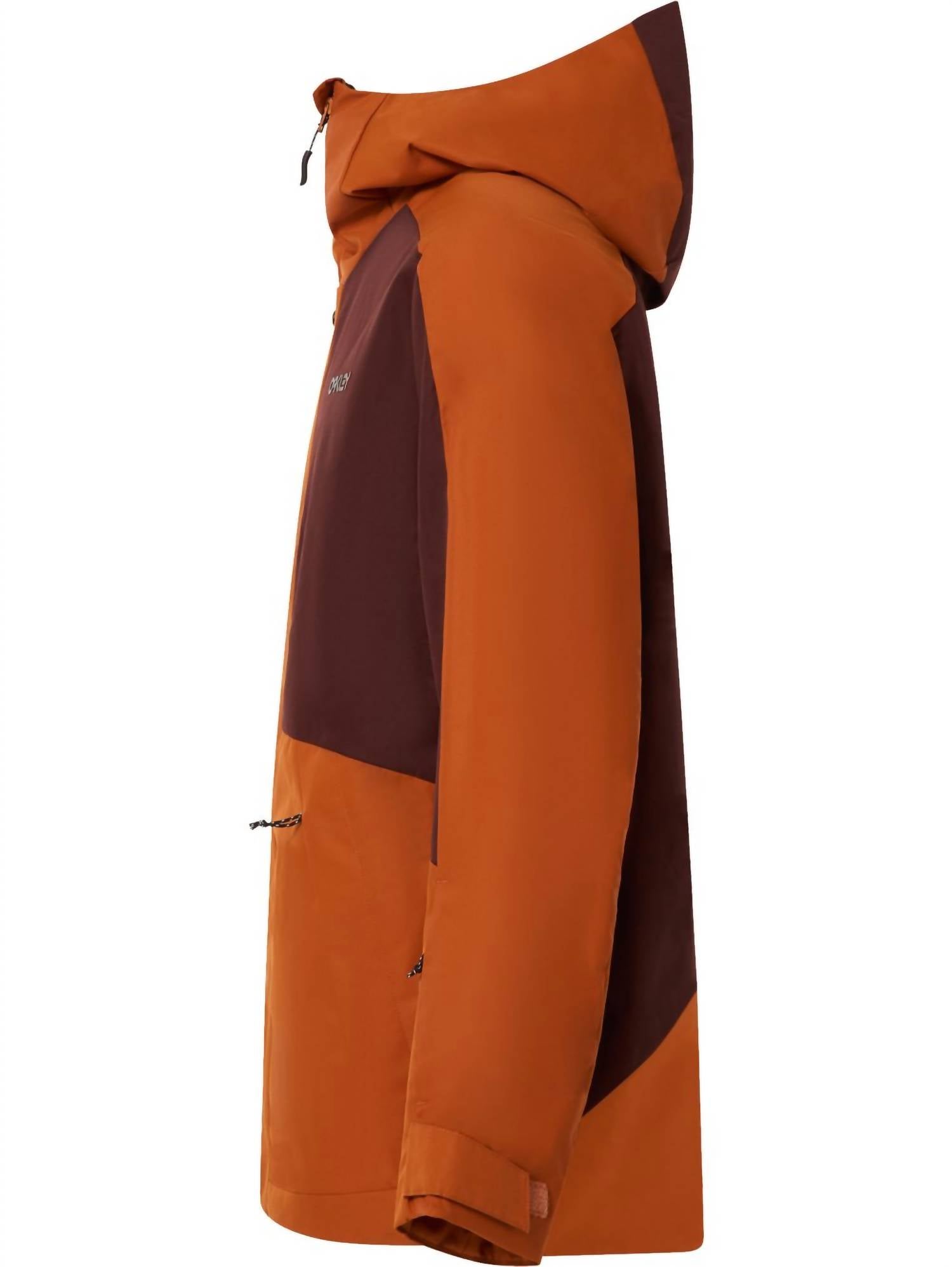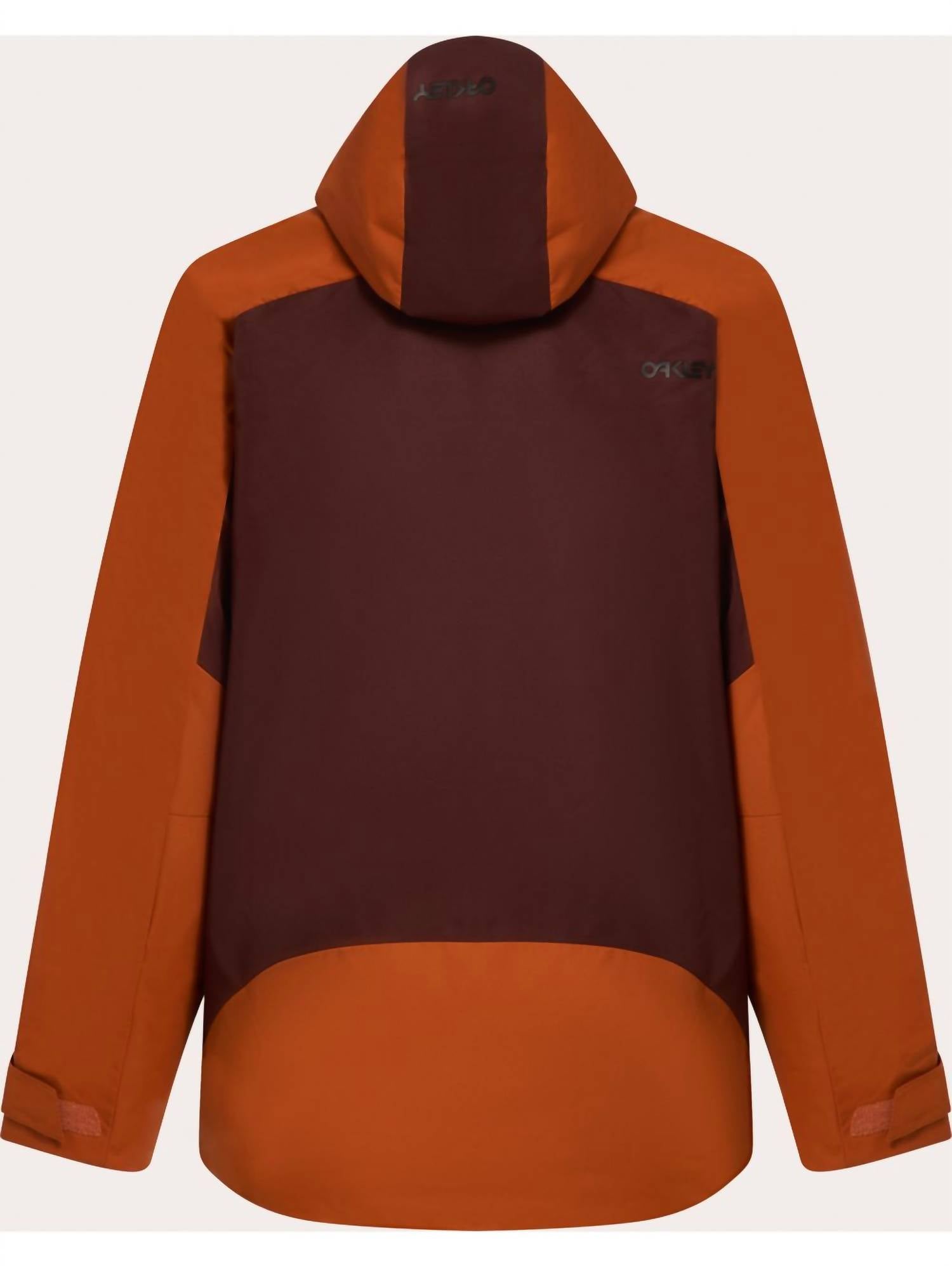 Introducing the Oakley Men's Range RC Jacket 2.0 in 52C-Ginger, a solid choice for ski and snowboard enthusiasts. This long sleeve jacket offers an insulated design with 80gr body insulation and 60gr for sleeves and hood, ensuring warmth and breathability throughout your runs. The jacket features a full zip closure with flap, snap, and Velcro, as well as functional elements like a helmet-compatible hood, pit vents, hidden zip pockets, and a fixed snow skirt.