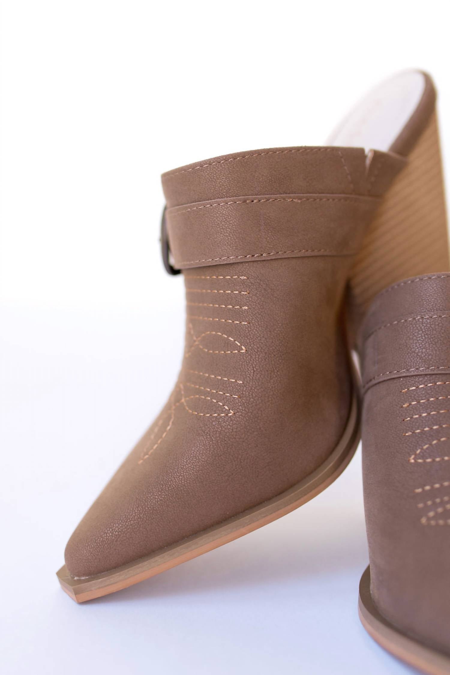 Step up your style game with the Dixie Block Heel Mule by OASIS SOCIETY, a perfect blend of mule and boot for a chic look. Crafted from dark taupe faux leather, these mules feature a fashionable pointed toe and a sturdy block heel measuring 3.75 inches, ideal for adding height without compromising comfort. Designed in a medium width, these shoes are perfect for pairing with flare jeans or any outfit for that matter, making them a great choice for workwear or holiday parties. Embrace the summer season with these trendy mules, perfect for celebrating occasions like the 4th of July with style.