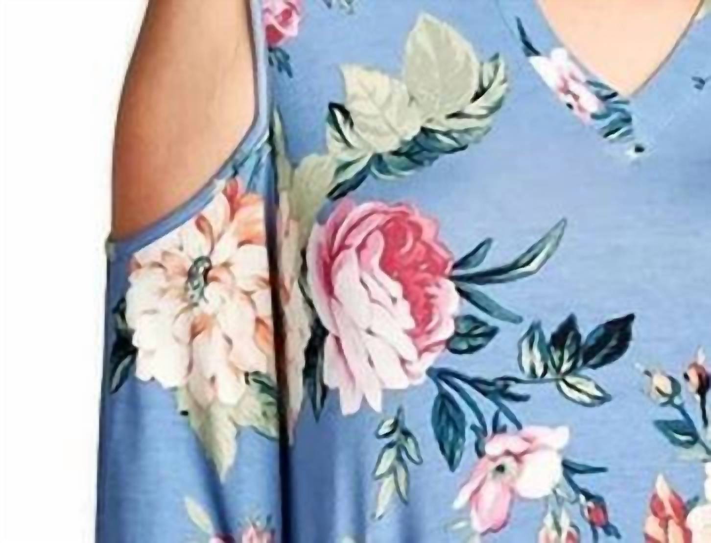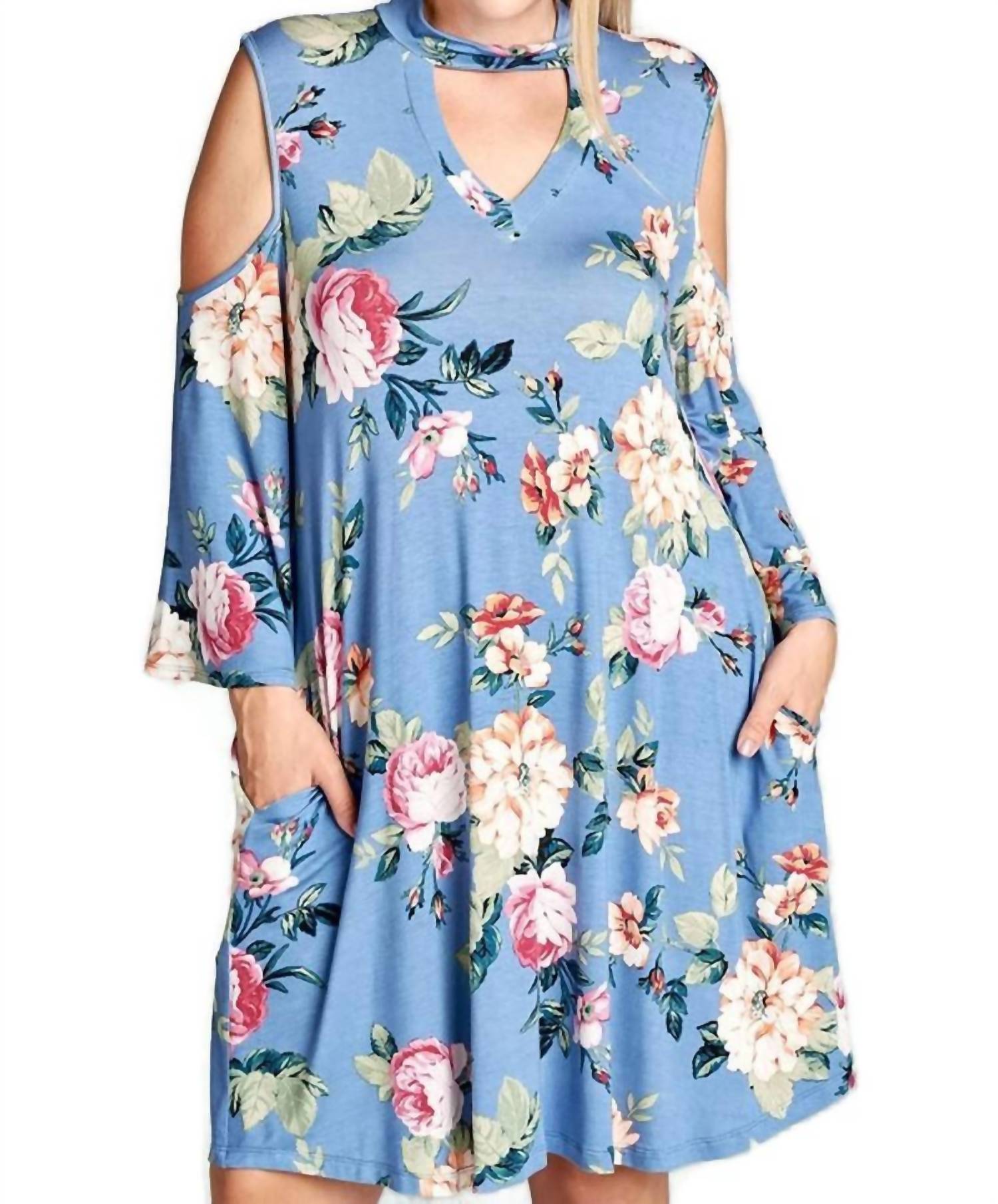 Presenting the Floral Vibes Choker Swing Dress by Oddi, a boho chic masterpiece in denim. This casual dress features three-quarter bell sleeves and chic cutouts at the shoulders, coupled with a flattering a-line swing silhouette. Made in the USA from 96% rayon and 4% spandex, it ensures comfort and style with its rayon jersey knit fabric.
