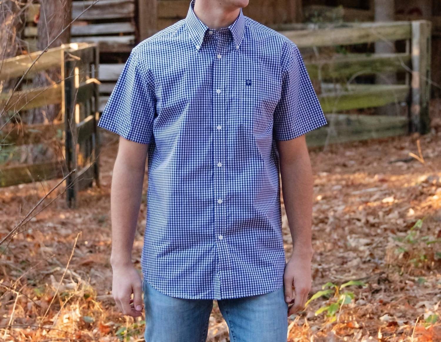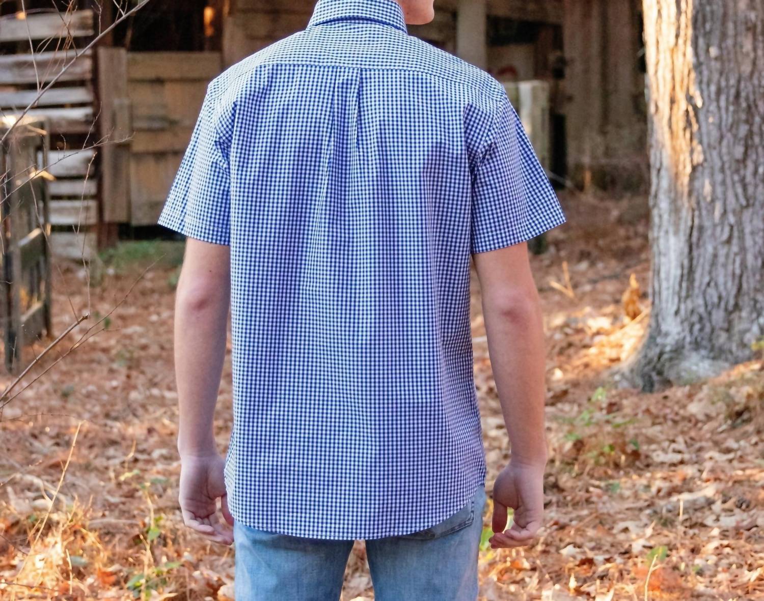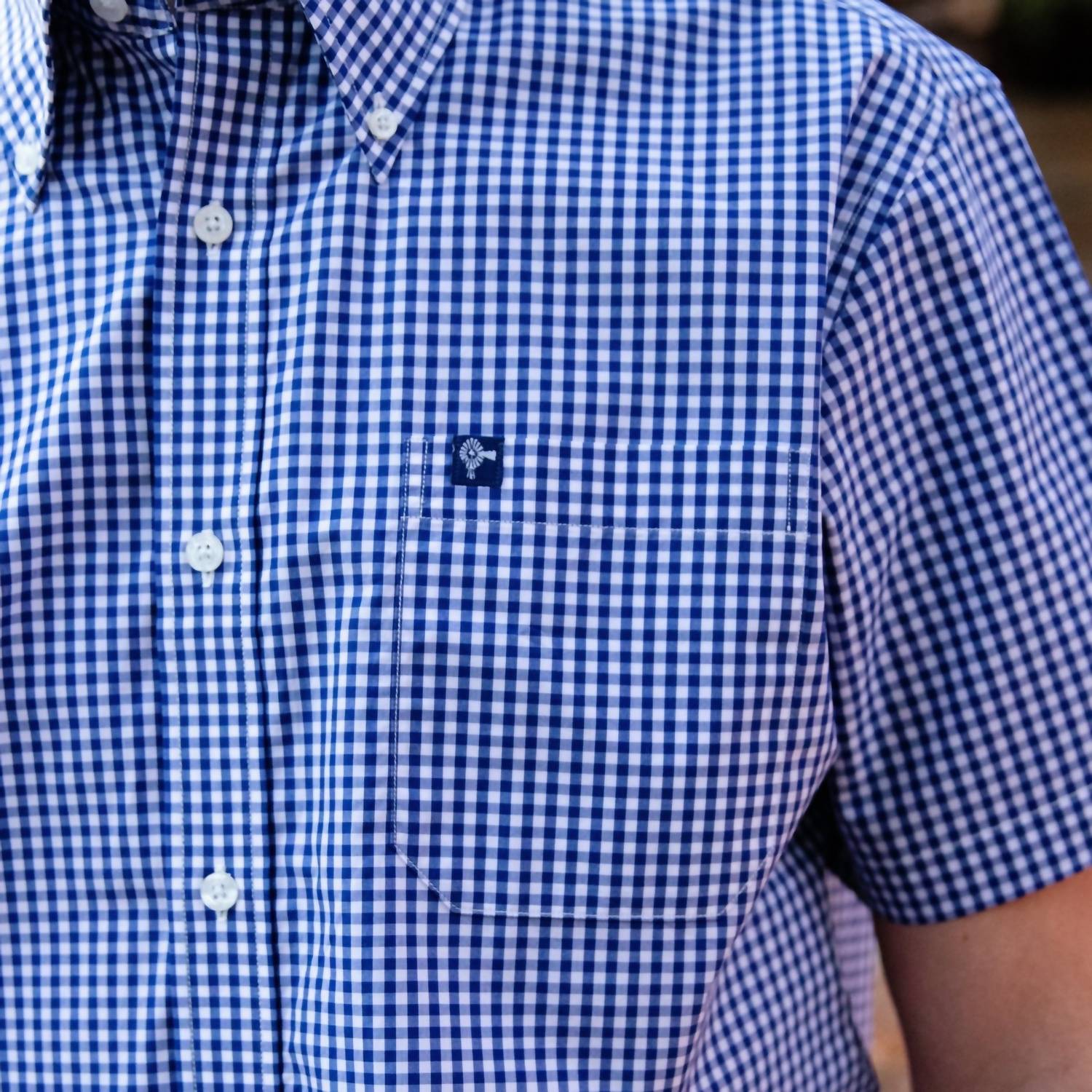 Discover the Avery Short Sleeve Sportshirt by Old South Apparel, a relaxed-fit piece perfect for summer streetwear. This men's gingham shirt in blue features open short sleeves and a classic collar, offering both style and comfort. Made of 100% cotton, it comes with an embroidered windmill clip label and laser engraved Old South buttons. The button closure ensures a tailored look, and you can easily care for it by machine washing and tumble drying.
