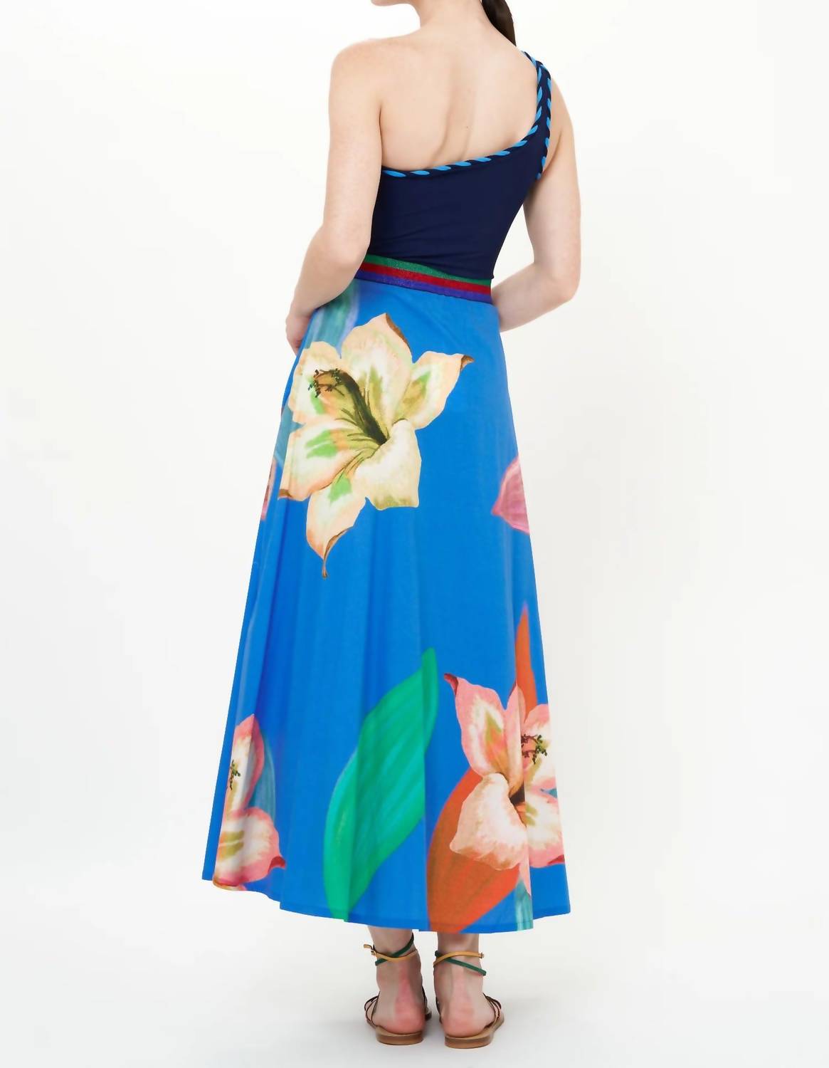 Elevate your vacation wardrobe with the Women’s Swing Maxi Skirt by Oliphant in Hibiscus Blue. This boho chic skirt features a vibrant floral pattern for a stylish summer look. The pull-on closure ensures comfort and ease, while the maxi length adds an elegant flair.