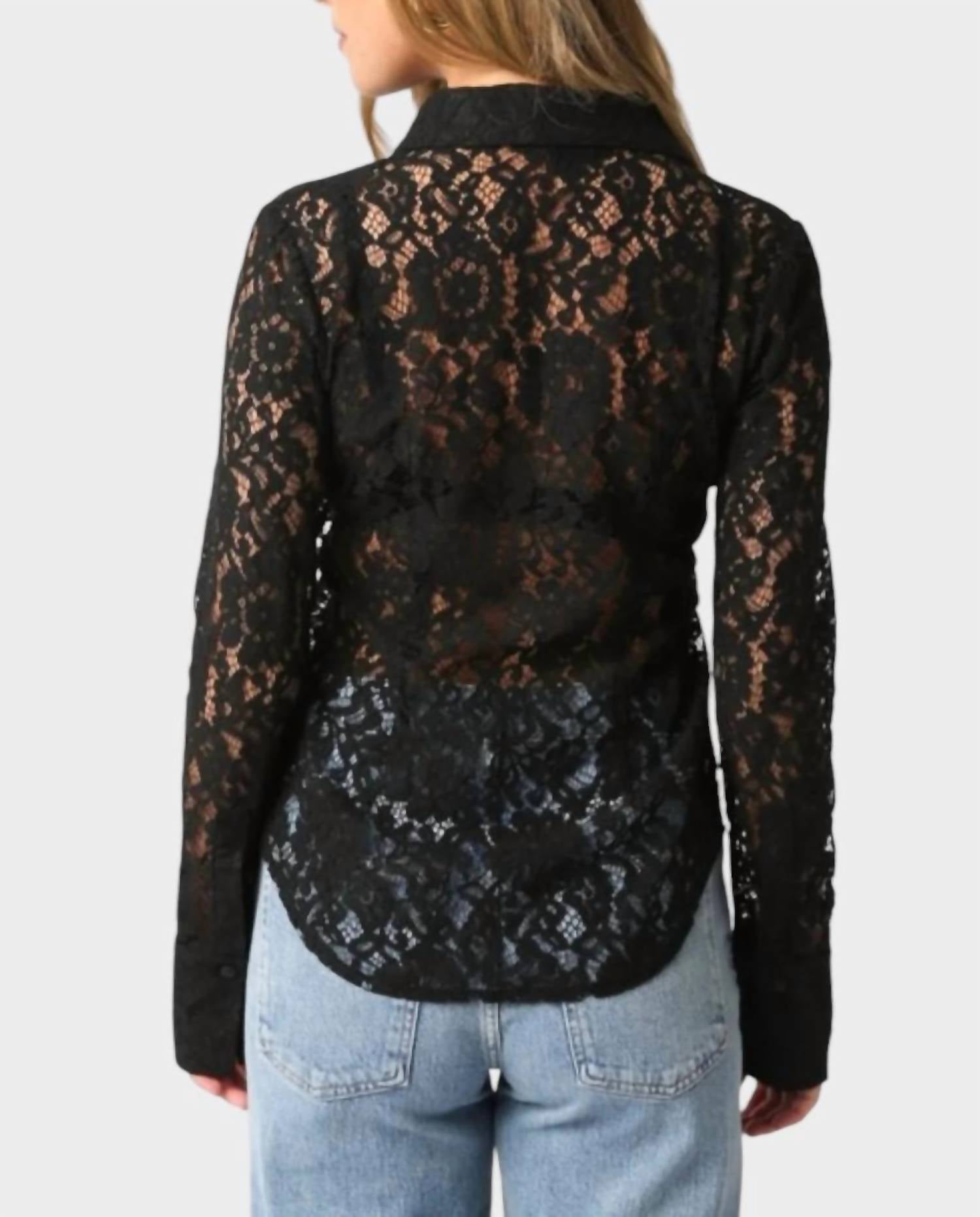 Elevate your wardrobe with the OLIVACEOUS Lace Button Up Top, a sophisticated blouse in elegant white. This piece features long cuff sleeves and is crafted from a cotton blend composition of 65% Cotton and 35% Nylon, offering a textured, sheer lace fabric. Its front button closure pairs beautifully with the classic collar neckline, making it perfect for various occasions. Please note care instructions are not provided.
