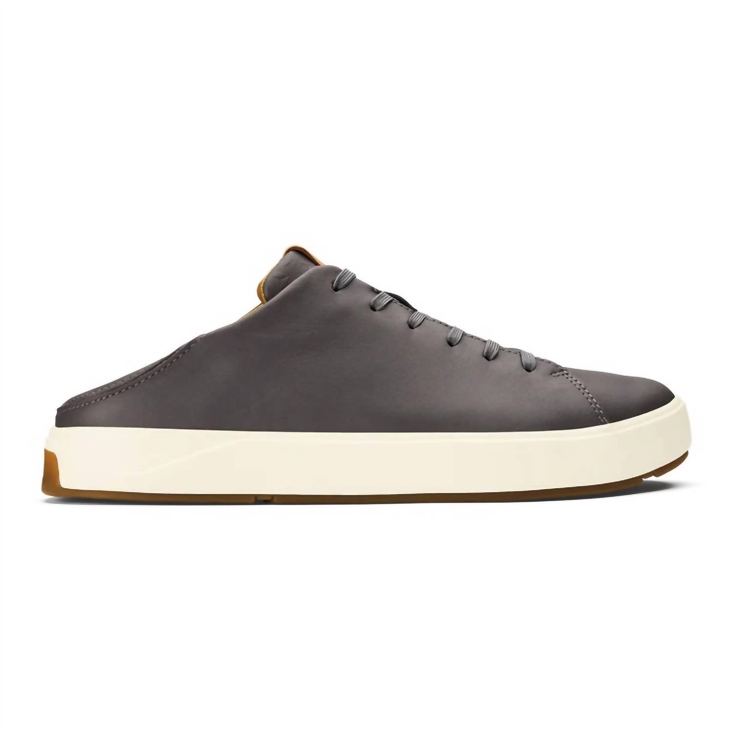 Introducing the Men's Lae‘ahi Lī ‘Ili Leather Sneaker by OluKai, offering a stylish blend of function and fashion. Crafted with premium waterproof full-grain leather in a natural Stone color, these sneakers boast a classic round toe and flat heel design. They feature a soft microfiber lining for enhanced comfort and breathability, while the Wet Grip Rubber® outsole ensures superior traction. Perfect for any weather and versatile for various occasions, these sneakers embody the craftsmanship of debossed Hawaiian kapa artwork on the tongue.