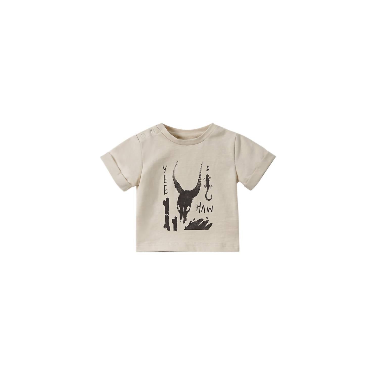 Relaxed fit and super soft, durable cotton jersey. Snaps on shoulder for easy dressing. Crew neck with inner binding. Gender neutral fit great for boys and girls alike. 100% cotton.