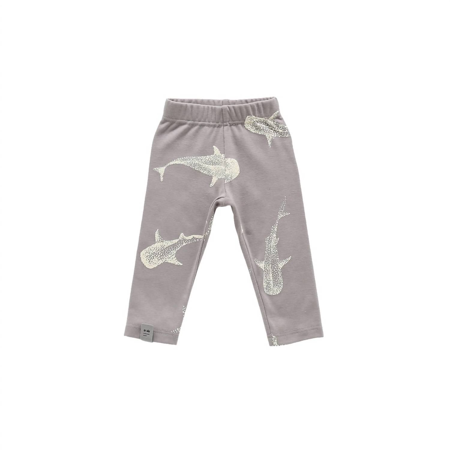 Whale shark print and super soft brushed jersey fabric. Elastic waist. Faux leather embossed logo detail on hem. 100% brushed cotton jersey fabric.