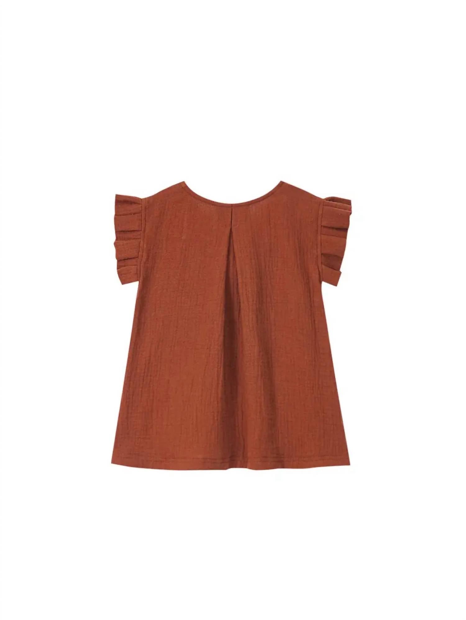Boxy pleats sleeve and inverted pleat back make this top extra-special. Crew neck. Inner binding around hand opening. 100% cotton gauze. Machine wash and dry