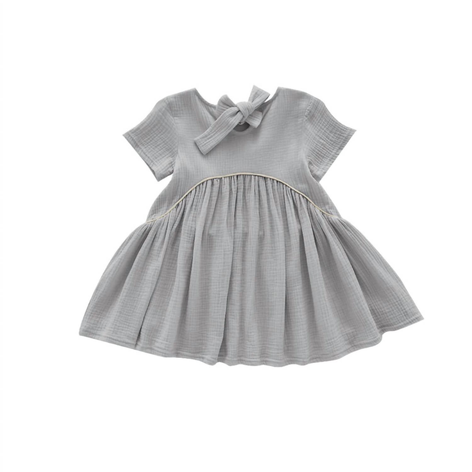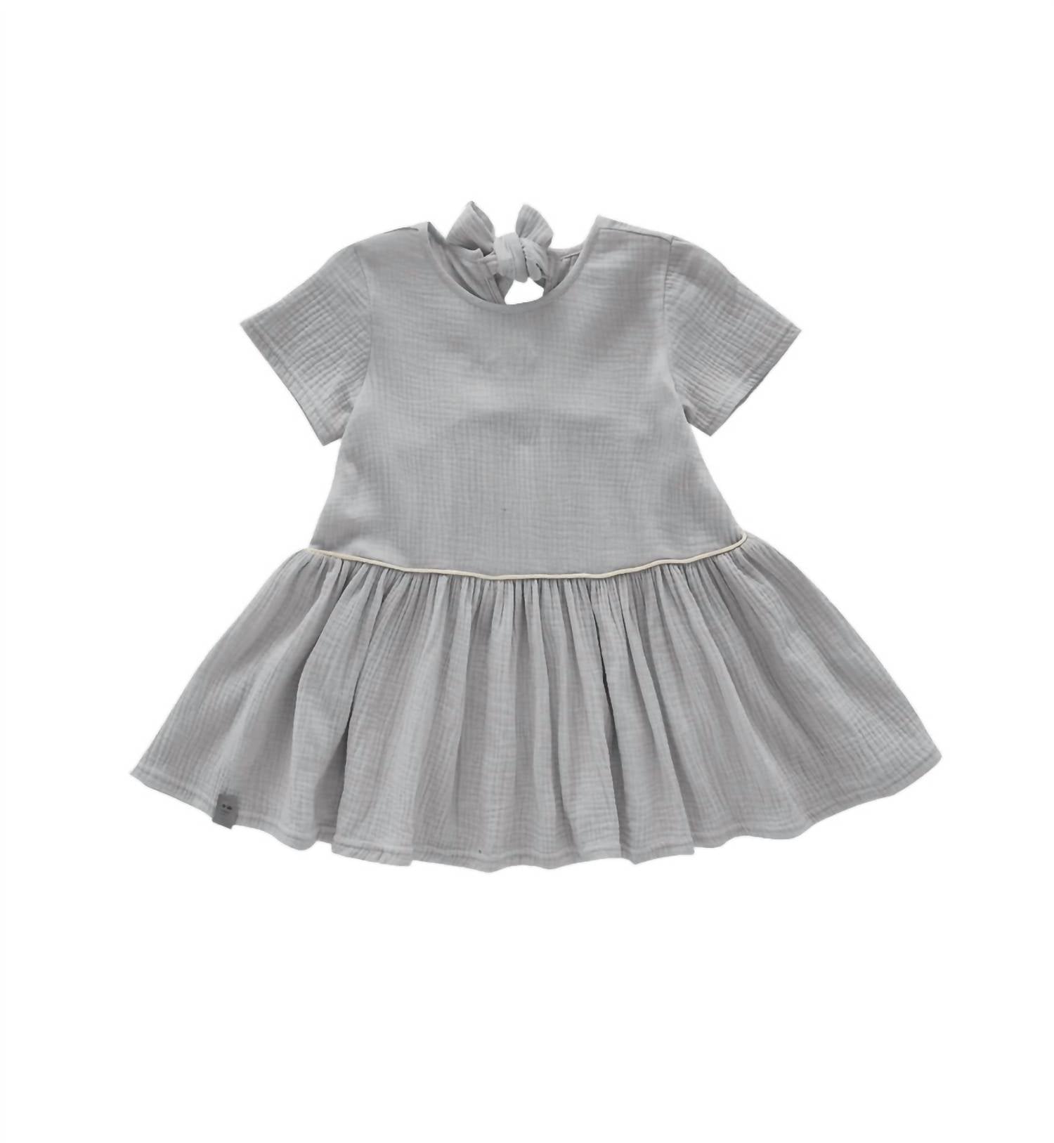 A-line flowy shape, generously gathered hi-low skirt, contrast piping and cute back tie detail make this pretty dress a warm-weather must. Short sleeve. In-seam side pockets. Pre-washed for extra softness. 100% cotton.