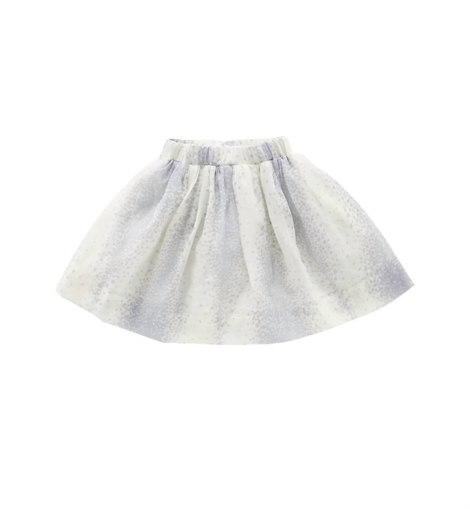 Full, layered skirt features an elasticized waistband, beautiful printed organza fabric with just a little sheen, and below the knee length. 100% Polyester, lining 100% Cotton.