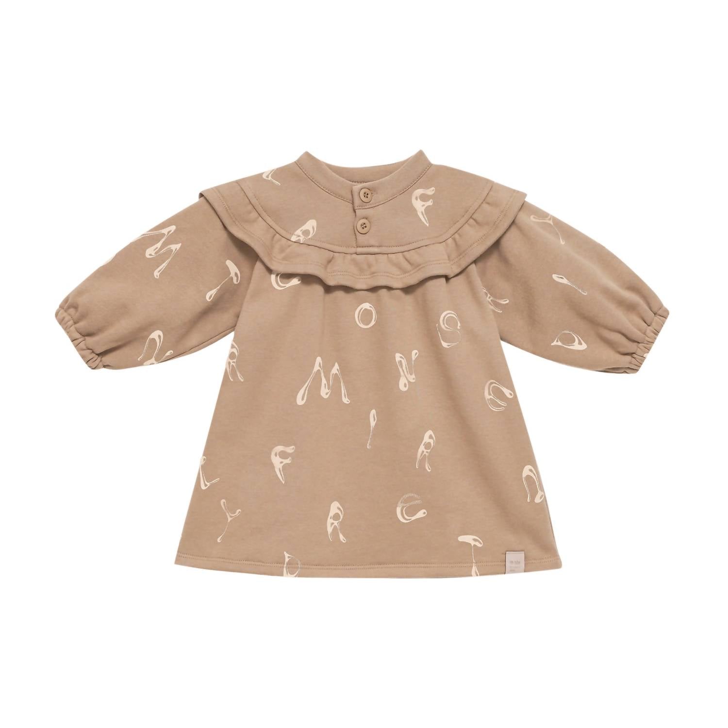Discover the OMAMImini Girl's Terry Dress with Ruffled Yolk, a perfect choice for any occasion, from picture day to a casual outing. Designed with full sleeves featuring an elastic cuff, this dress is crafted from 100% cotton, offering a cozy and soft feel. It boasts a mock neck with button front opening and convenient in-seam side pockets. Care for it effortlessly with machine wash and tumble dry instructions.