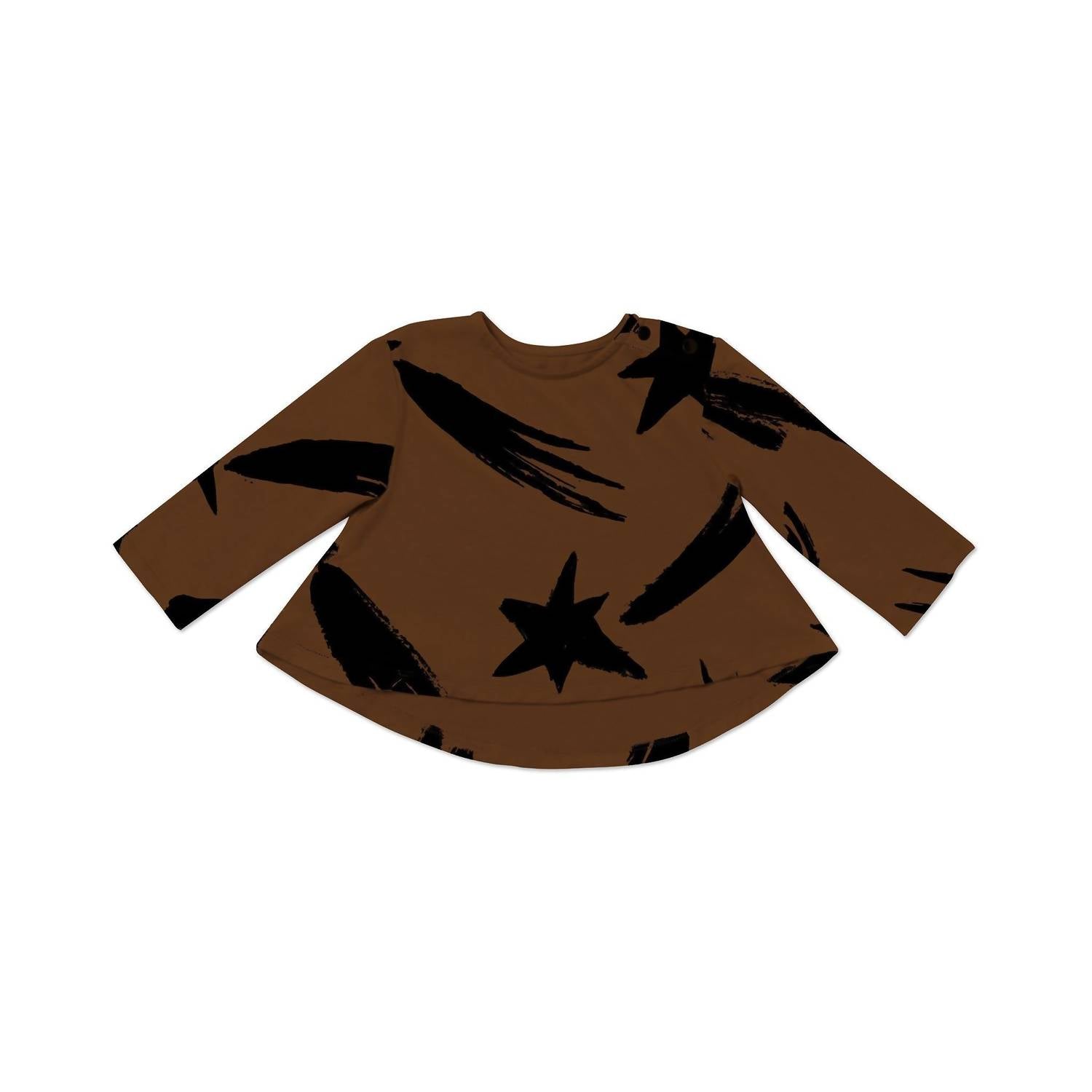 Uber soft long sleeve tunic with all over print is easy to match with almost anything and made to be an all-time favorite. A-line silhouette. Round neckline with inner binding. 2-snap closure on shoulder placket. 93% cotton, 7% spandex. Machine wash and dry.