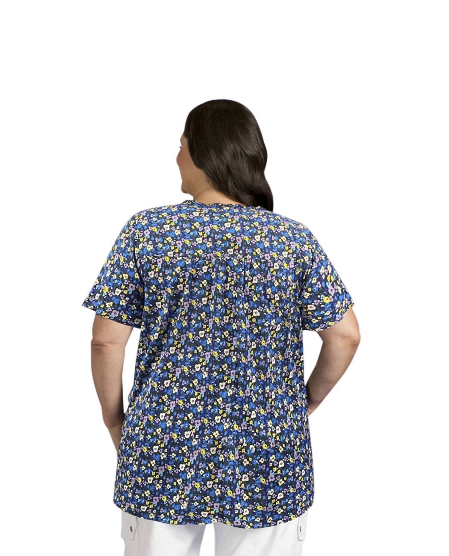 Pair this with your favorite jeans and slides for your next girls night out.V-Neck, Short Sleeve Top. 52% Polyester 40% Polyester 8% Spandex. Machine Wash.