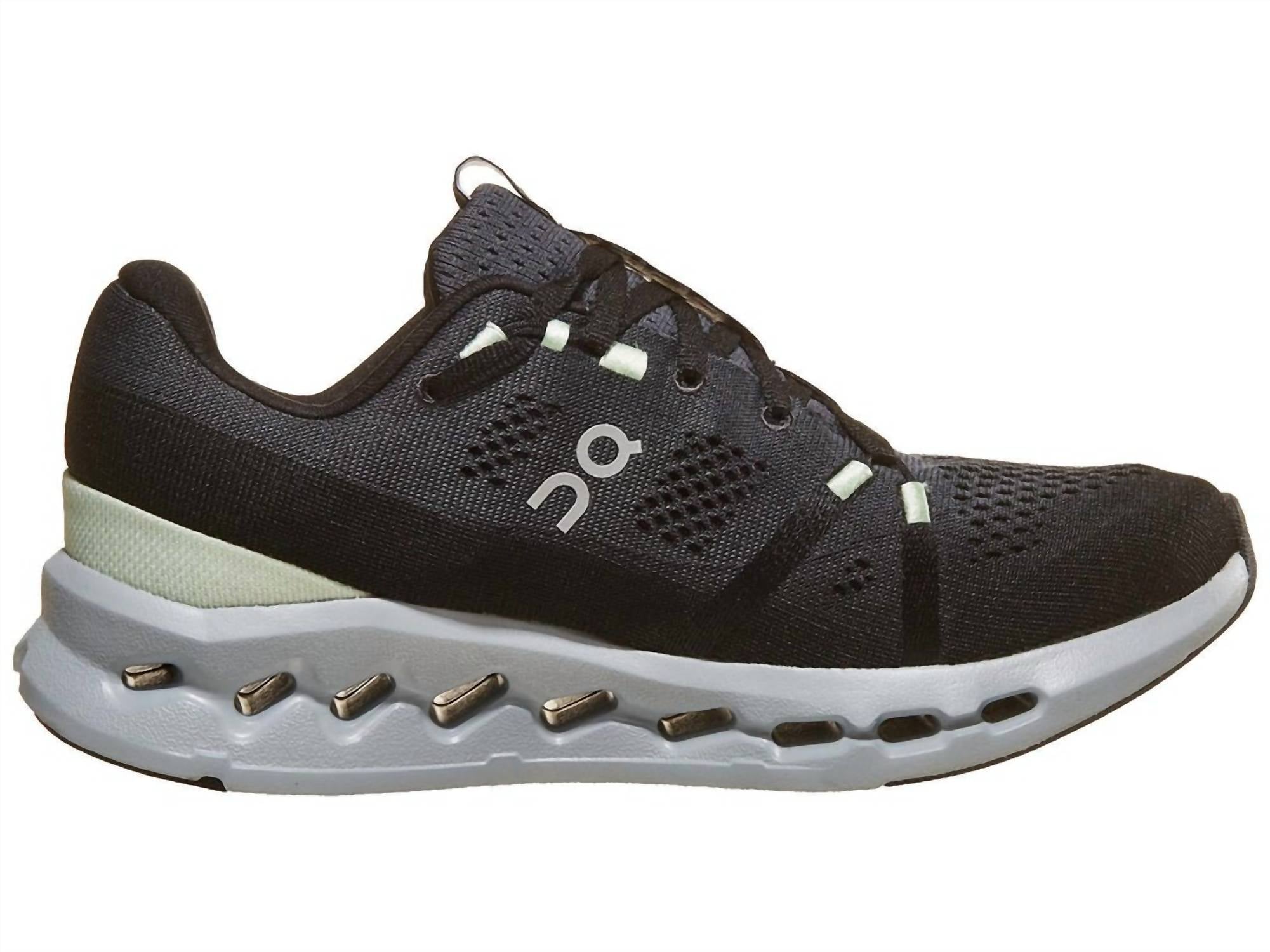 When fashion meets function. Experience unbeatable comfort and style with the Women's Cloudsurfer - B Running Shoe by On in a chic Iron/Glacier tone. This everyday training shoe features an engineered mesh upper crafted from recycled materials, ensuring optimal breathability and a secure, soft fit. The midsole, constructed with HELION SUPERFOAM, delivers a lightweight and responsive ride, complemented by a CLOUDTEC rubber outsole that enhances traction and durability. Weighing just 8.3 oz (235 grams) with a heel stack of 37 mm and a forefoot stack of 27 mm, these shoes provide a 10 mm heel-toe offset, perfect for summer athleisure and travel occasions.