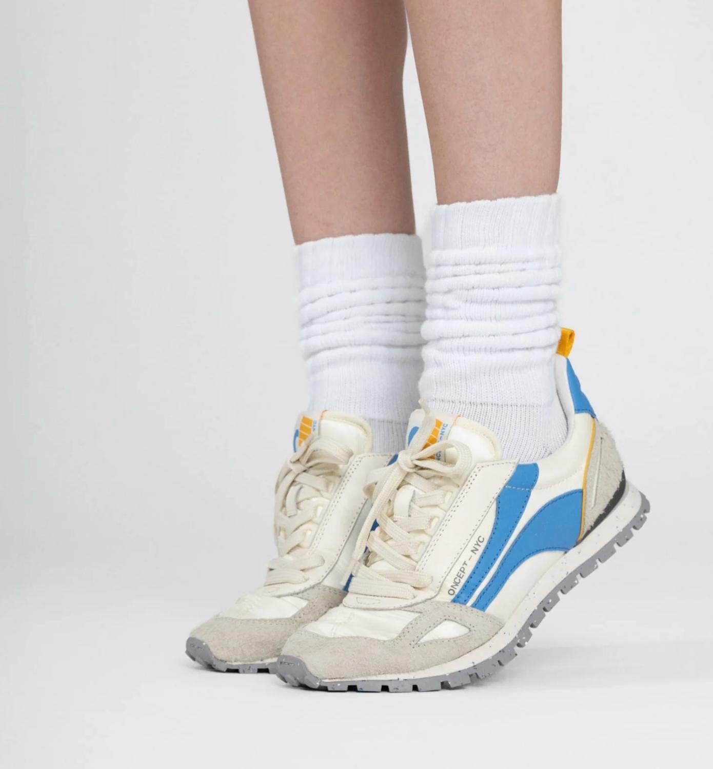 Step into style and sustainability with the Women's Toronto Low Top Sneaker by Oncept. Crafted for comfort in Adriatic Blue, this sneaker features eco-conscious materials like silky Re-Nylon, soft calf leather, and Alaska suede, with a re-speckled EVA midsole and recycled insole boards. Its deconstructed design offers lightweight flexibility and true-to-size fit, perfect for a streetwear-inspired outfit. Care is simple: gently wipe the upper with a damp cloth and avoid machine washing, ensuring that your eco-friendly style remains impeccable.