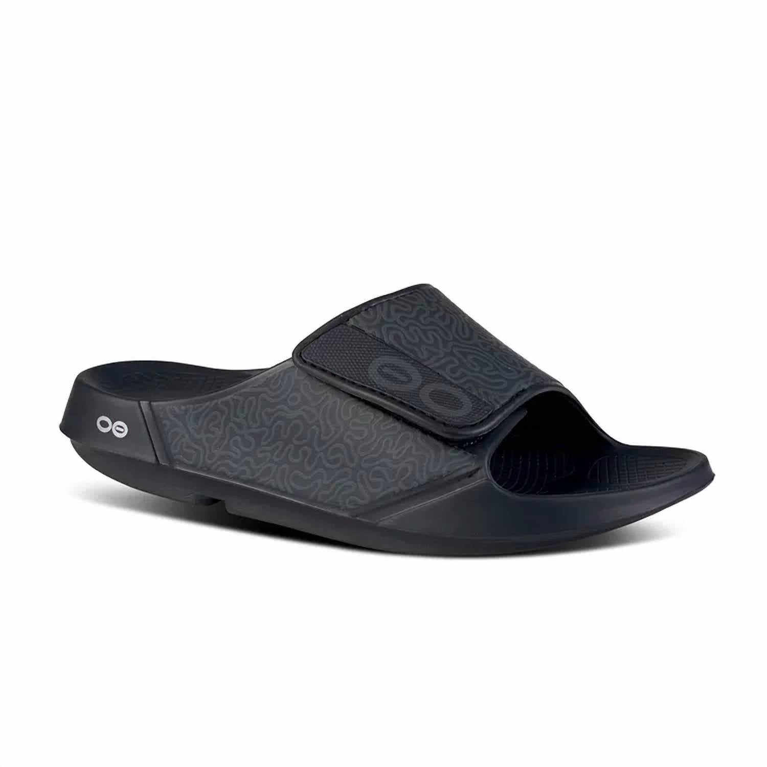 This footwear has a foam sole and outer material made of Oofoam, which is water-resistant. It is a slip-on design with a Velcro enclosure for a customizable fit. The impact absorption is 37% better than regular footwear due to OOfoam technology. It features a proprietary footbed that supports joints and reduces stress on knees and ankles. The closed-cell foam is machine washable, helping to minimize odor. Women's 4 and Men's 6.