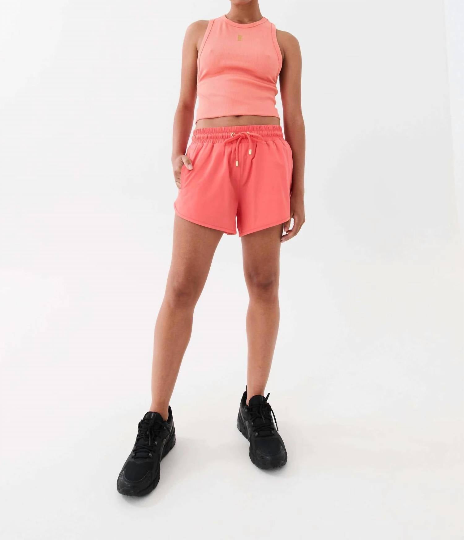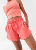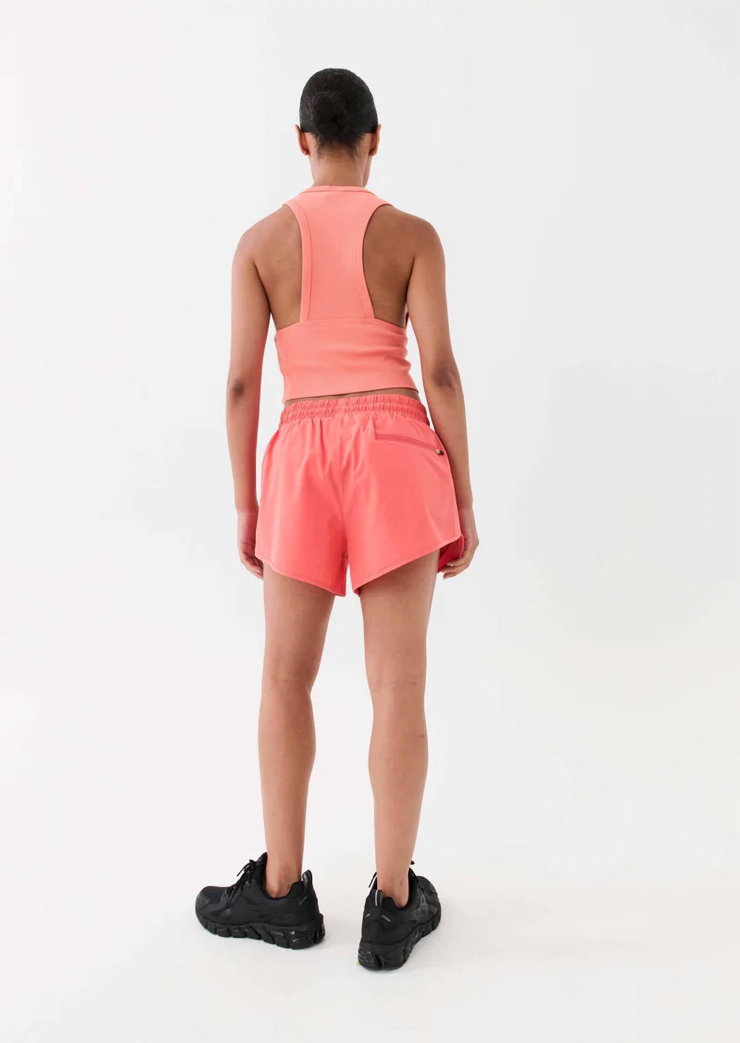 Mid-waist relaxed fit short. Internal brief side pockets. Back pocket with zipper. Elasticated waistband with functional drawcord. Gold-plated hardware. P.E Nation reflective logo at side. Fabric: 92% Recycled Polyester 8% Elastane. Machine wash cold.