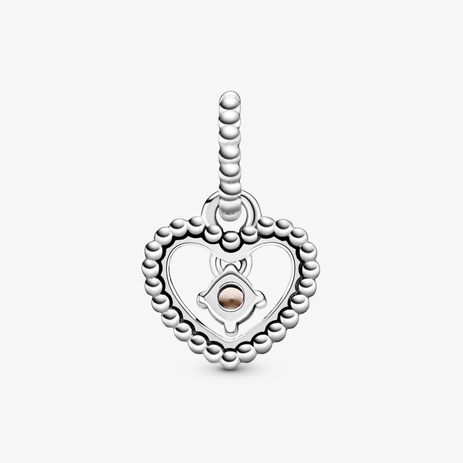 This stand-out bracelet is good enough to wear on its own, or stacked with your favorites. Capture the essence of elegance with the June Beaded Heart Dangle Charm by Pandora, an exquisite piece in silver and rose hues. This fashion charm is intricately hand-finished in sterling silver, featuring a claw-set buff top-cut light misty rose man-made crystal. With dimensions of 12.4mm height, 12.1mm width, and 2mm depth, this charm offers versatile styling options on Pandora bracelets or necklaces.