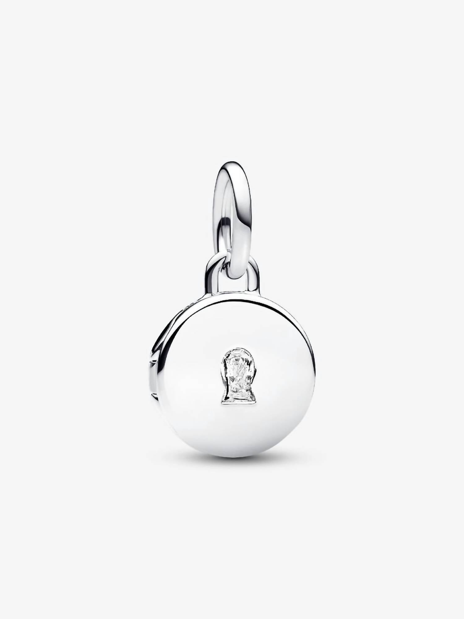 Keep what's most dear to you close to your heart with the Openable & Engravable Love Locket Dangle Charm. This sterling silver locket charm features a clear cubic zirconia stone on the front in the shape of a keyhole, and opens and closes securely so you can keep a tiny picture, note or lock of hair inside. The inside of the locket is engraved with the message "TODAY TOMORROW ALWAYS", and the back is blank for your own engraving. Wear it on your Pandora Moments necklace or bracelet as a symbol of keeping your love safe and a reminder to cherish it, every day. charm only