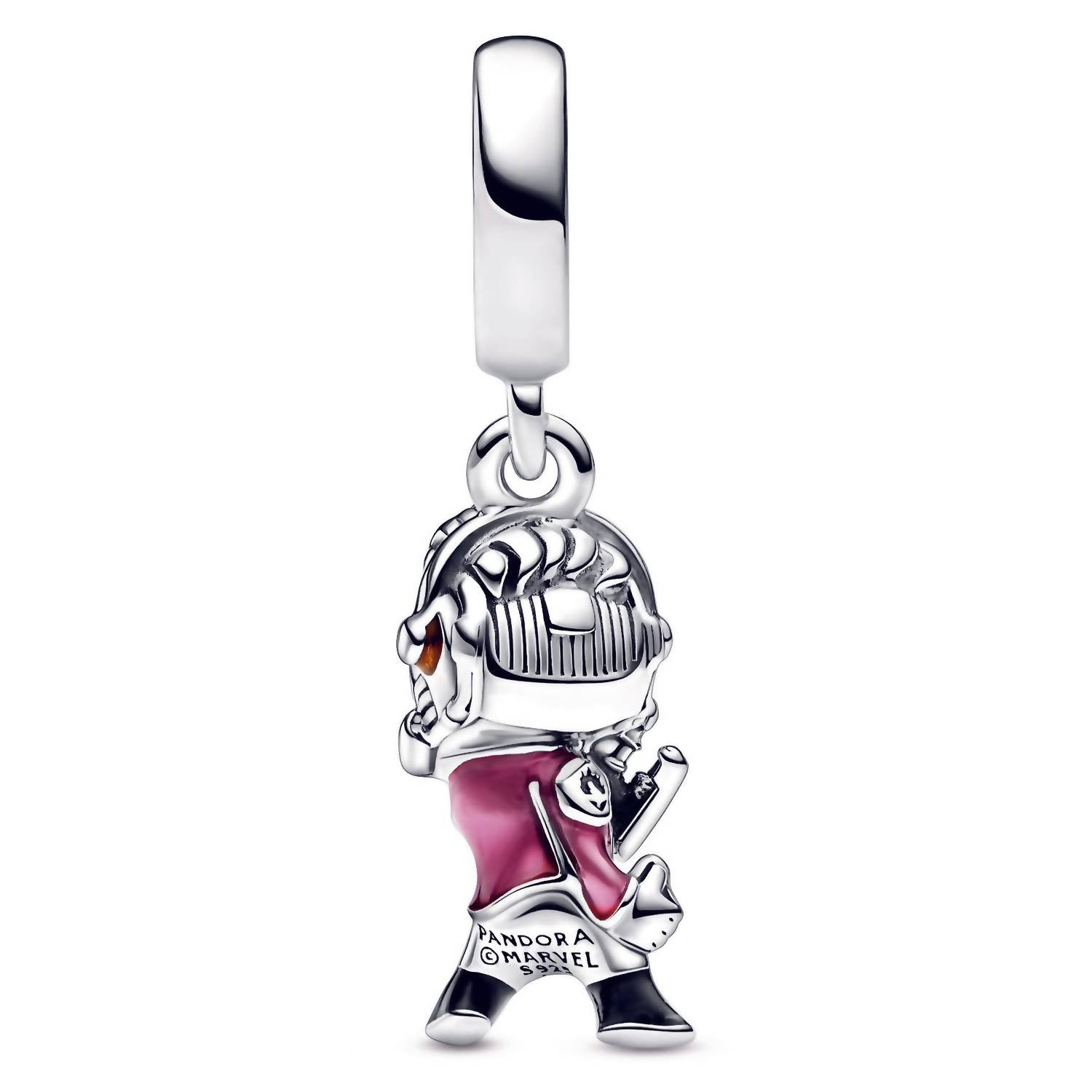 Introducing the Women's Marvel Guardians Of The Galaxy Star-lord Dangle Charm by Pandora, a sterling silver piece designed to deliver intergalactic style. This charm is highlighted with hand-applied enamel to accentuate Star-Lord's detailed costume, complete with his iconic helmet featuring glowing red simulant rubies. Crafted in sterling silver, it serves as a captivating addition to your Marvel x Pandora collection. Perfect for fans, this charm brings a touch of cinematic flair to your ensemble.