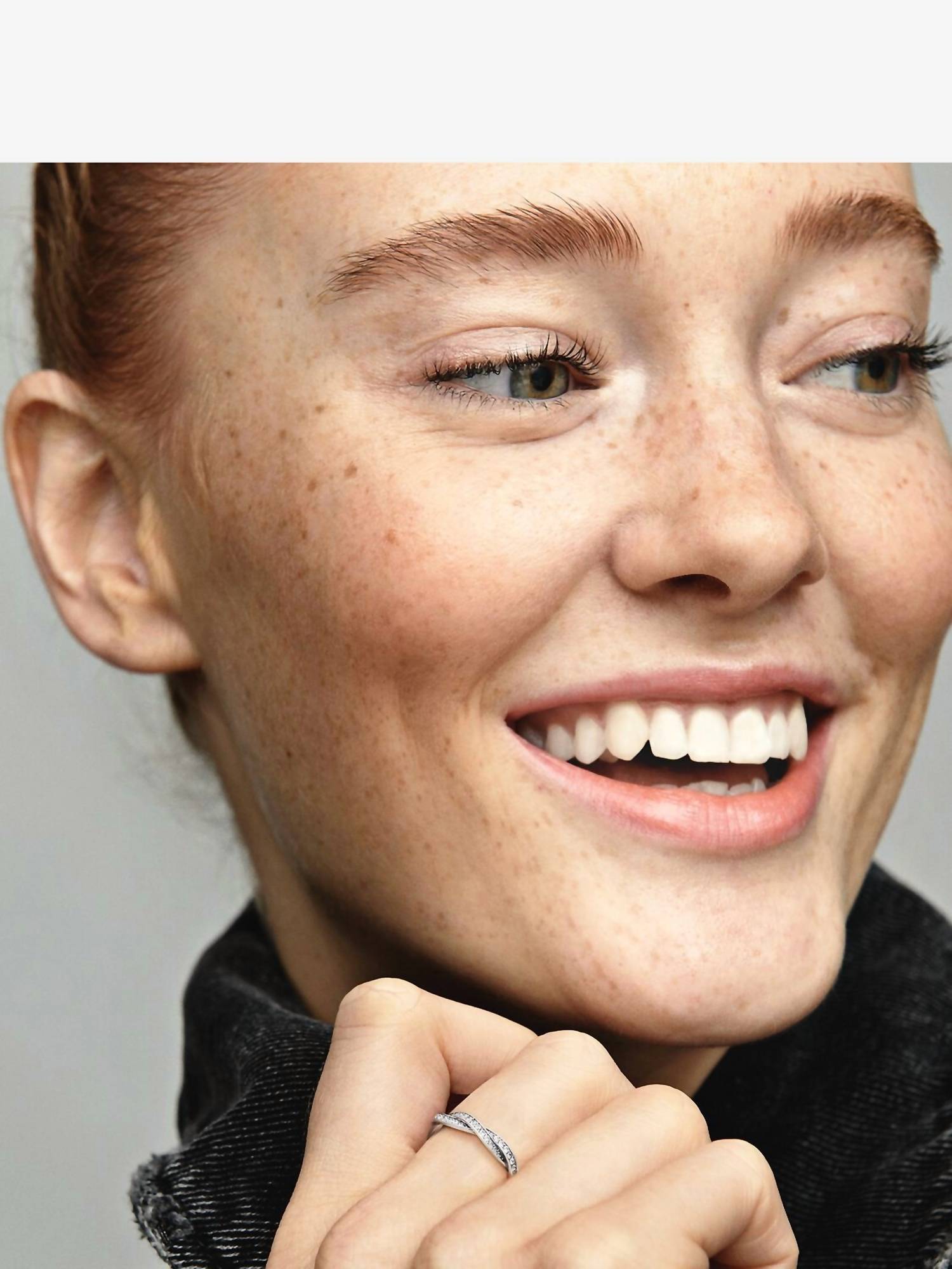 Wear this ring stacked or by itself... you can't go wrong. Elevate your accessory game with the Women's Sparkling Twisted Lines Ring by Pandora in stunning silver. Crafted from sterling silver and featuring pavé-set cubic zirconia, this ring exudes timeless elegance. Its twisted design evokes the infinity symbol, perfect for symbolizing eternal bonds of love. Made for versatile wear, try stacking multiple rings for a statement look.