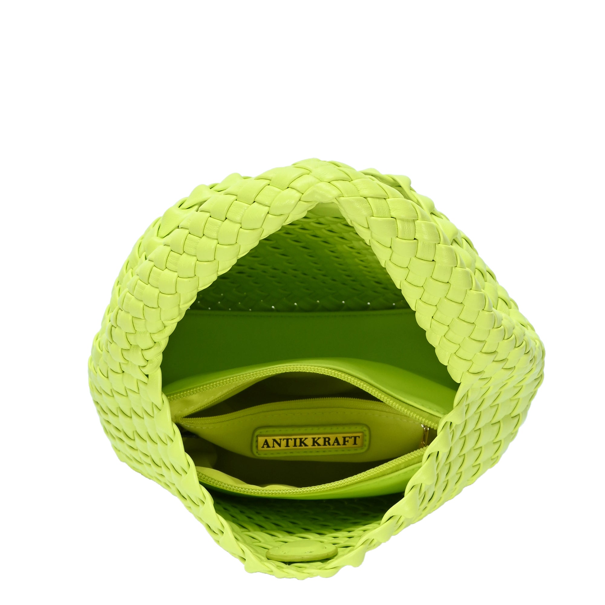 Elevate your style with the Parker 2 in 1 Woven Satchel by Antik Kraft – a minimalistic yet elegant statement piece for your wardrobe. Crafted from handwoven vegan leather and accented with light gold hardware, this satchel combines sophistication with functionality. The soft weave texture feels luxurious to the touch, while the integrated 2 in 1 pouch offers versatile storage options. A magnetic button closure secures the main compartment, ensuring your essentials are always within reach and safely stowed. Whether you're heading to the office or out for a casual day, the Parker Satchel is the perfect accessory to carry your everyday essentials in style.
