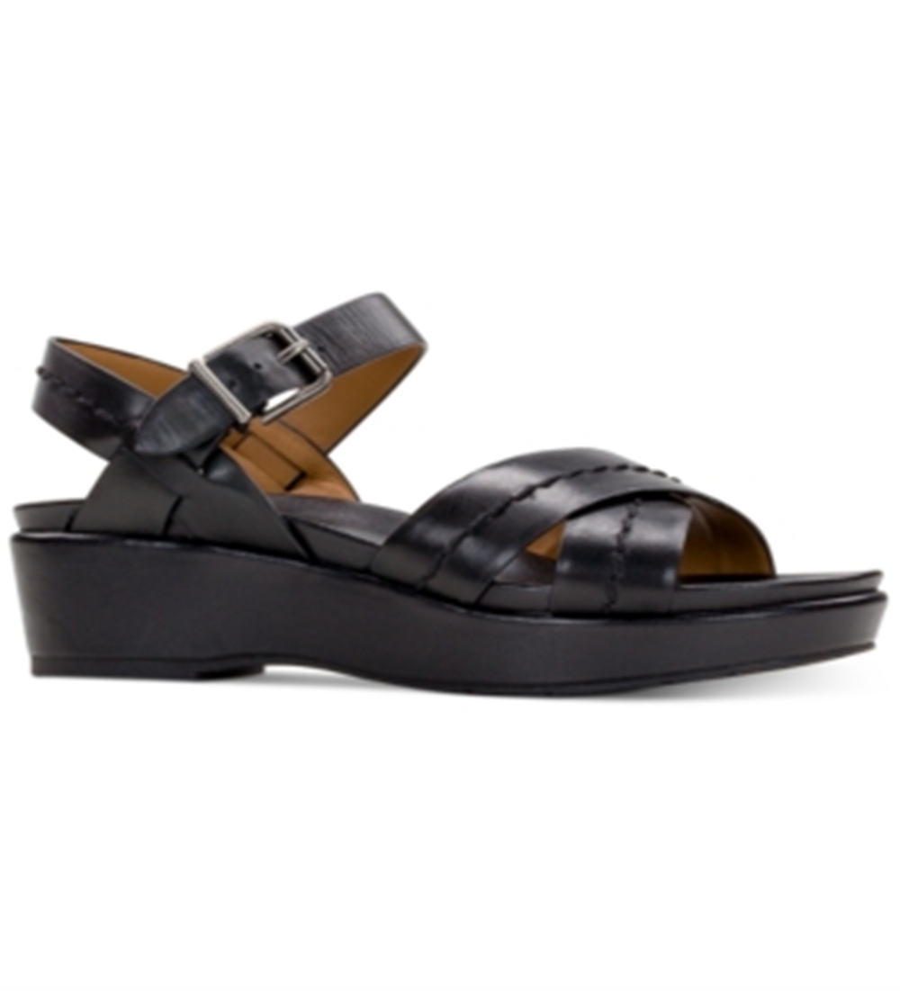 The Leila wedges from Patricia Nash dress up or down in a versatile strappy profile lofted on a fun platform heel.| x heel; y platform| Round-toe ankle-strap slingback platform wedge sandals with adjustable buckle closure| Leather upper; manmade sole| Imported