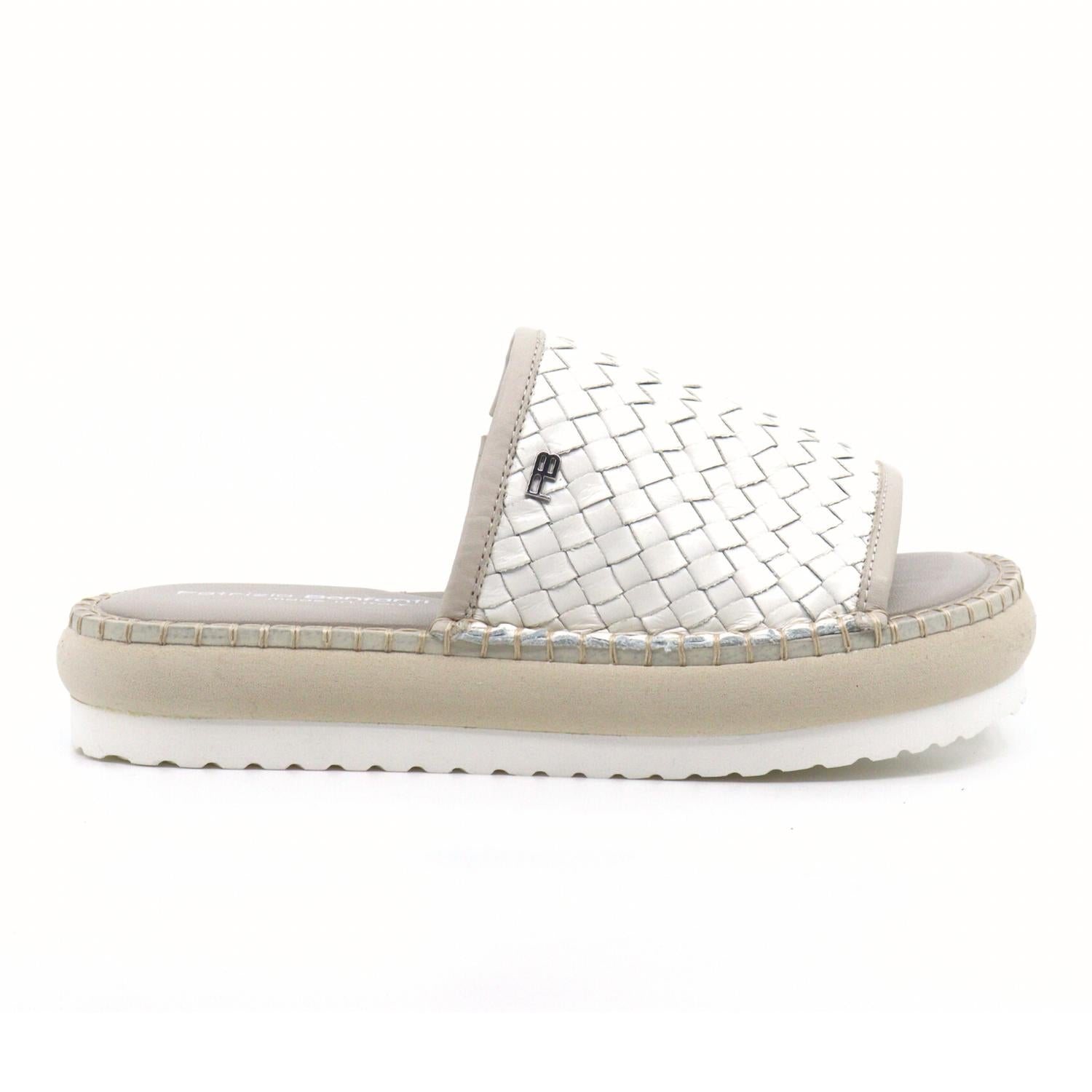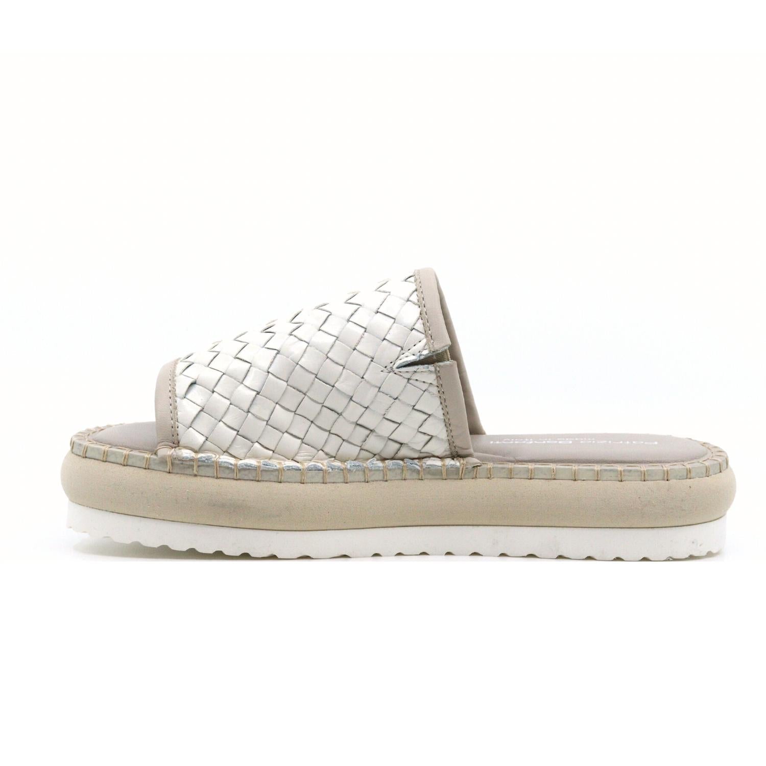 Woven leather. Tan leather trim. Two-tone sole. Handcrafted stitching. Internal elastic. Patted sole. Made In Italy.