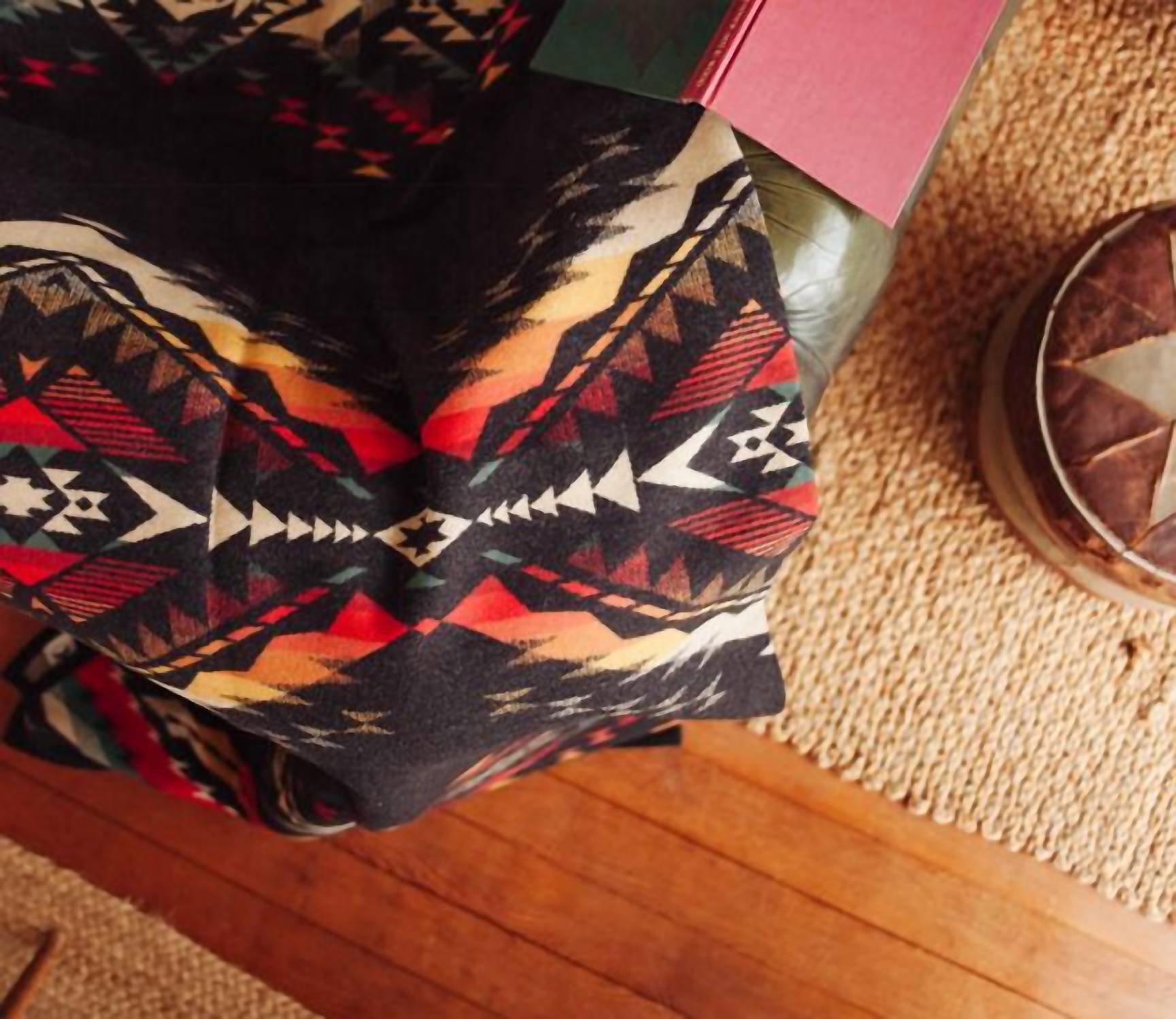 Introducing the Bridge Creek Unnapped Blanket Robe by PENDLETON, crafted with a stunning design that encapsulates the essence of Mitchell, Oregon. This adult blanket, made in the USA, features a blend of 82% virgin wool and 18% cotton for superior comfort and warmth. Highlighted by its intricate diamond and zigzag pattern, the blanket is finished with a whipstitch binding. Care instructions recommend dry cleaning to maintain its detailed fabric woven in American mills.