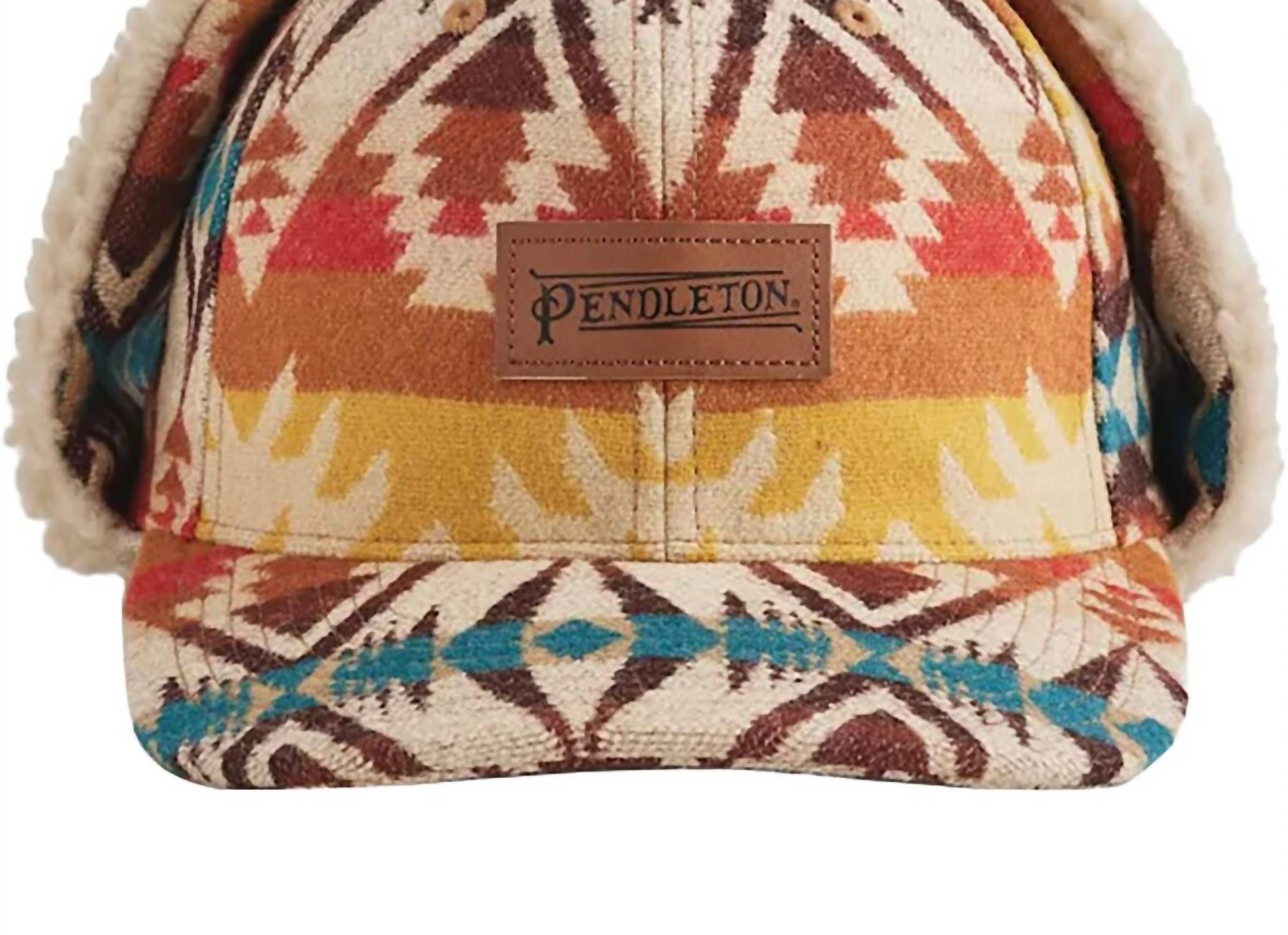 The PENDLETON Women's Timberline Hat in Pasco Gold is a chic blend of style and functionality. This hat features six panels made from durable USA-woven wool and includes soft polyester faux fur-lined ear flaps that can be secured under the chin with a leather strap, or tied on top when not in use. The curved brim adds a classic touch to its design. Made from 100% pure virgin wool with leather trim and imported from USA/imported fabric, it's a quality piece that offers warmth and elegance.