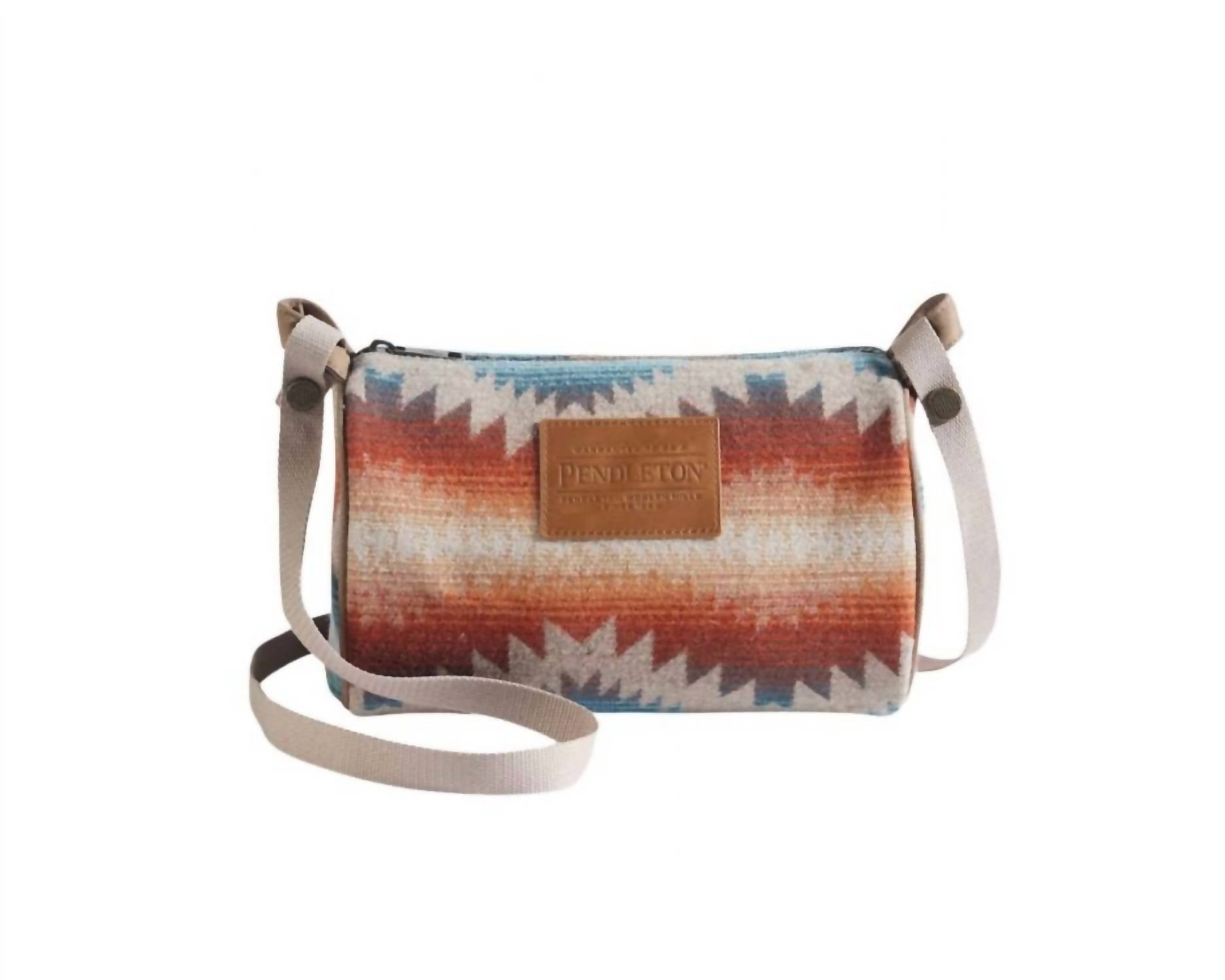 The crossbody bag is a trend that is here to stay and we especially love this style. Introducing the Women's Travel Kit Bag from PENDLETON, a versatile piece perfect for staying organized on-the-go. This Sunset Pass Brown bag features antique brass hardware and can function as both a roomy toiletry kit or a handy crossbody bag with a removable 47" strap. Crafted from 100% virgin wool with cotton trim, it measures 9"W x 5½"H and offers a lined interior with a slip pocket. Made from USA wool, it showcases the brand’s dedication to quality craftsmanship.