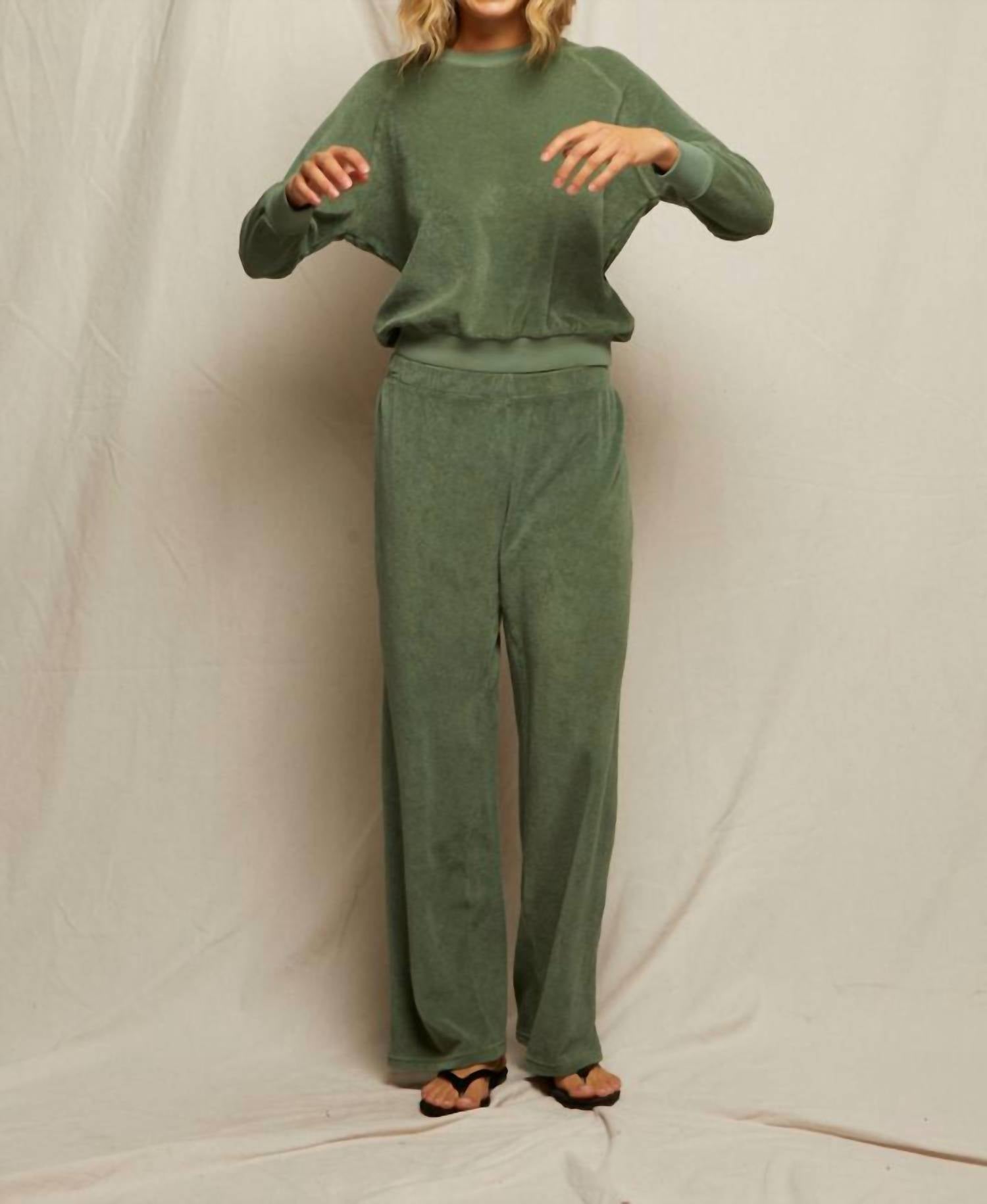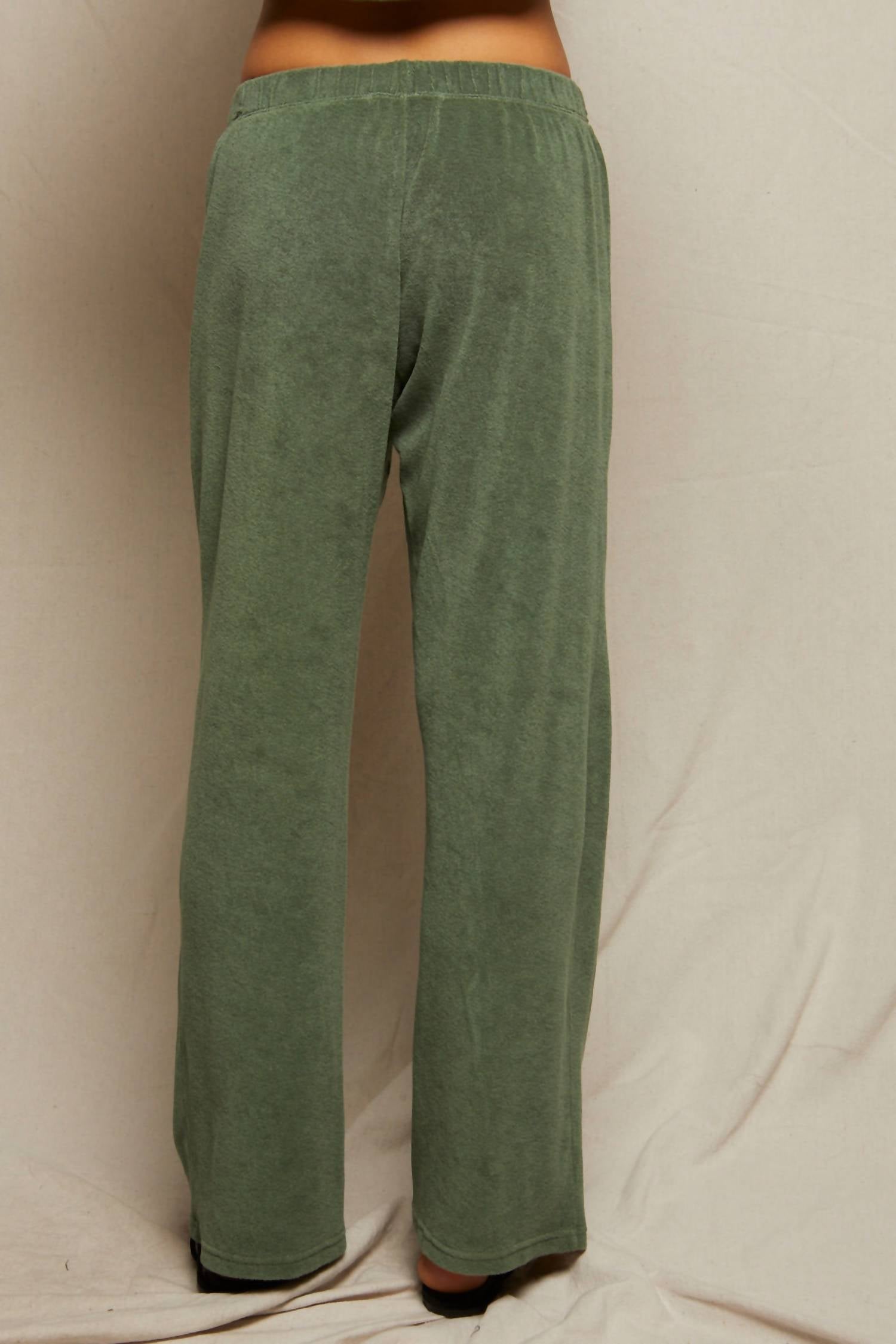 The perfect pant for running around town and looking cool while doing it. Elevate your summer athleisure look with the Katie Loop Terry Pants from Perfectwhitetee, now available in a refreshing Aloe color. Crafted from 100% Premium Loop Terry Cotton, these joggers boast a lightweight and soft feel, perfect for casual summer days. Featuring a relaxed fit with a mid-rise waist and straight leg, they offer both style and comfort. Closure: Pull-on. Care: Gentle machine wash cold, tumble dry low, and warm iron if needed. Avoid spot treatment or adding softeners for best results.