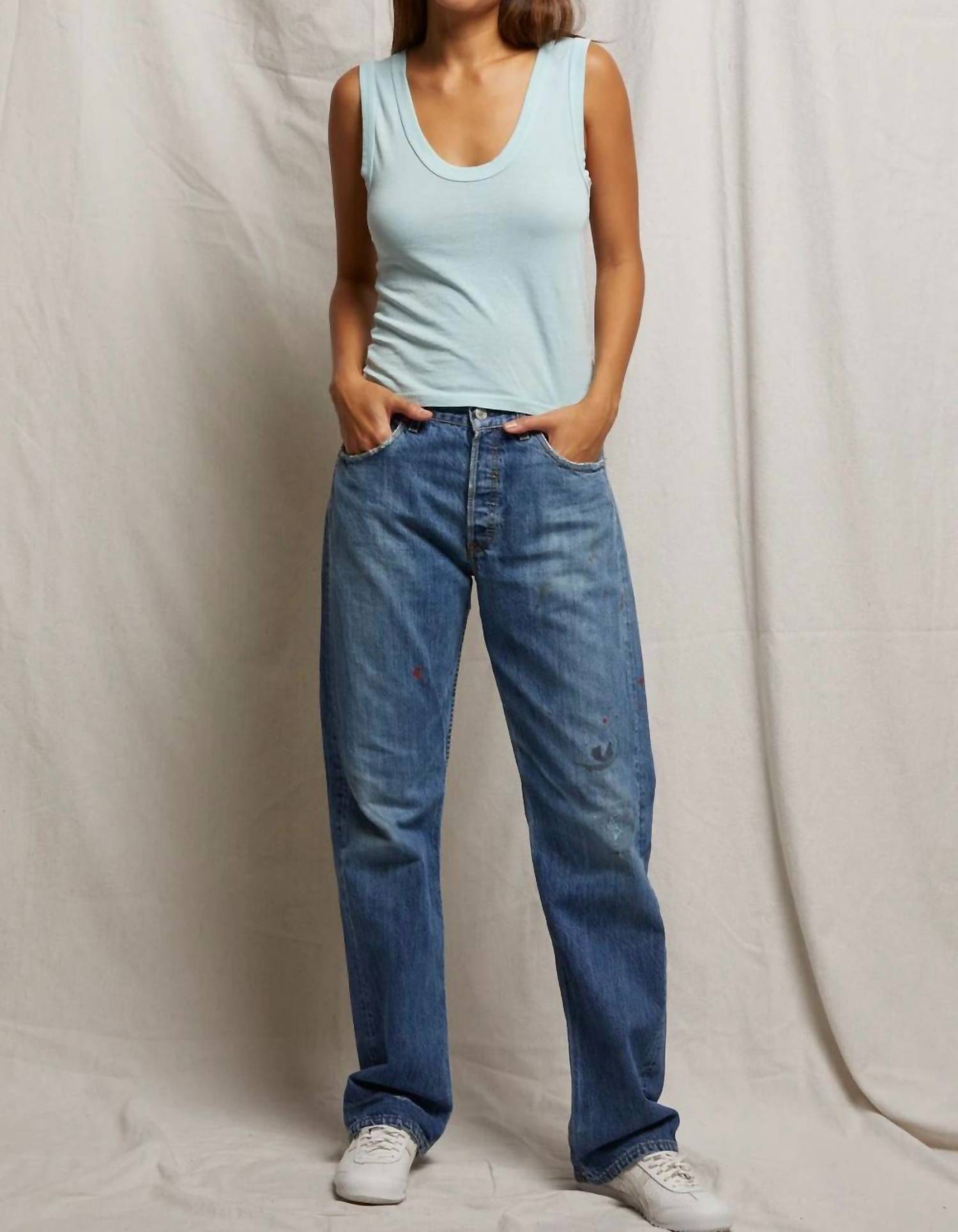 The perfect tank top for those warmer weather seasons. The Khara U-neck Tank by perfectwhitetee in Iced Aqua seamlessly combines comfort and style with its bra-friendly design and wide straps. This sleeveless tank is composed of 100% cotton, and it falls naturally at your waistline for an easy, relaxed fit. The pull-on tank is a minimalist piece perfect for summer occasions, like a dinner party. Care is simple with a gentle machine wash cold, tumble dry low, and warm iron if needed, but avoid spot treating or adding softener.