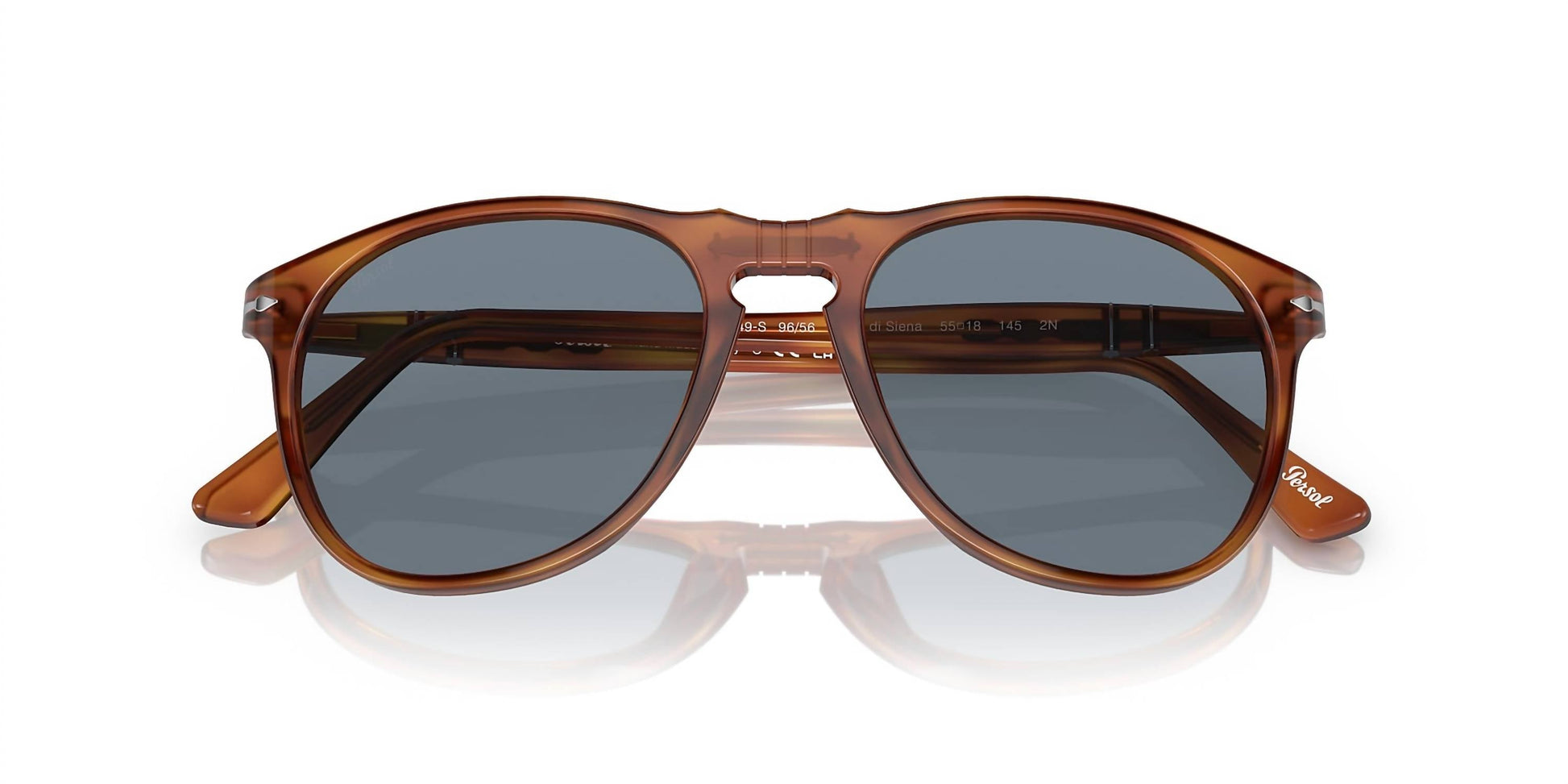 Introducing the Persol 9649 Men's Sunglasses in Terra Di Siena, a perfect blend of legacy and innovation. Crafted in Italy, these sunglasses feature a blue crystal premium lens set in a durable acetate frame, offering excellent durability and a premium visual experience. The iconic Supreme Arrow symbol and the flexible Meflecto temple system provide unmatched comfort and adaptability for any face shape. With a regular fitting size of 55-18-145, these round and oval style sunglasses represent Italian excellence with signature features like the VictorFlex metal mechanism and a comfortable keyhole bridge.