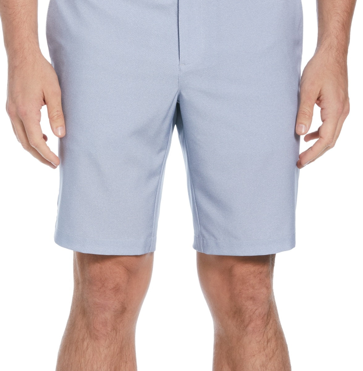 Maximize your comfort on the course with these golf shorts from PGA Tour| featuring a texture-print pattern and moisture-wicking fabric with built-in sun protection.| Approx. inseam; 9| Wicking fabric helps evaporate moisture; stretch performance; built-in sun protection; active stretch waistband| Zip fly with button closure| Two side hand pockets; two back welt pockets| Texture-print pattern