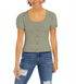 Pink Rose Junior's Ribbed Puff Sleeve Top Green Size Medium