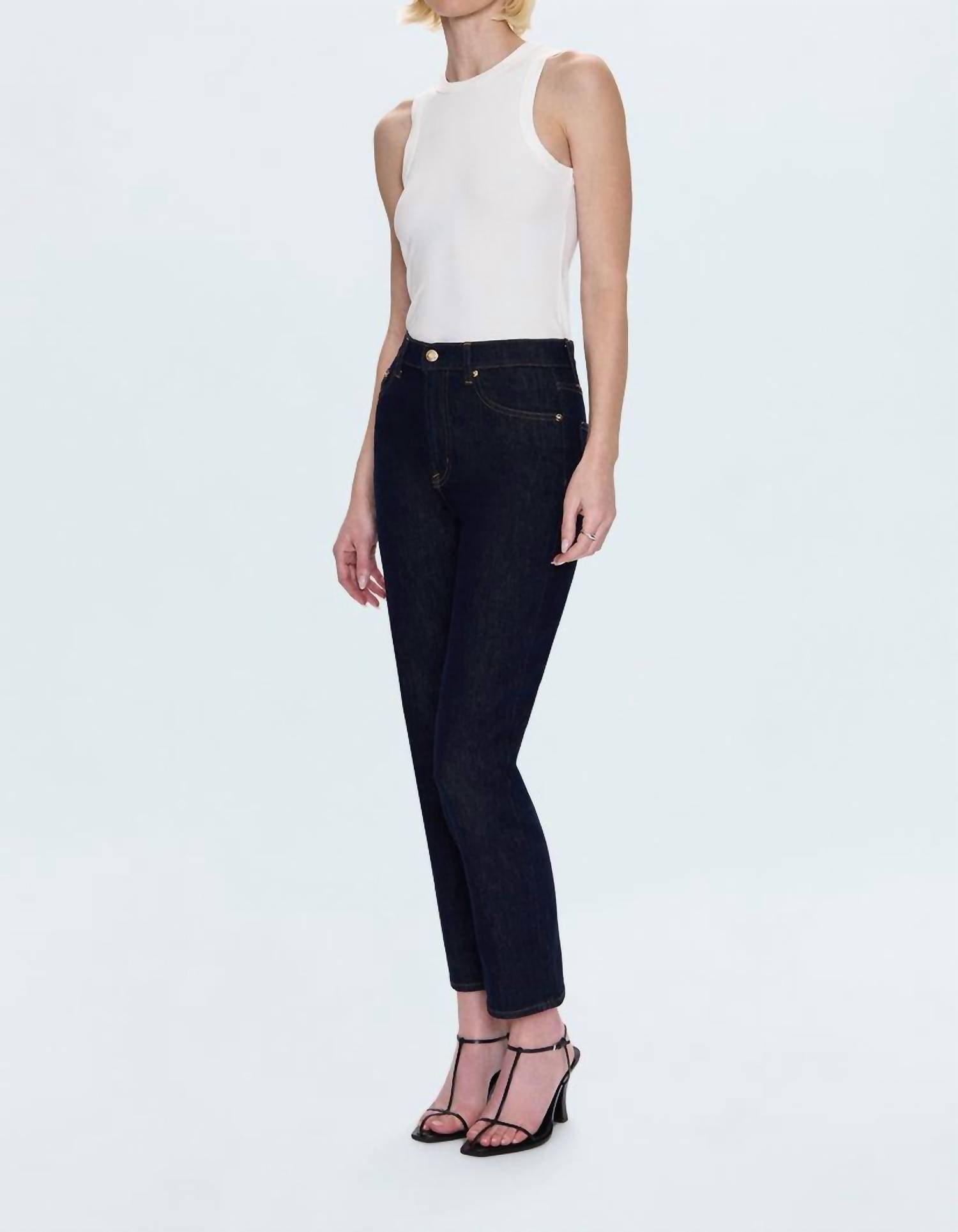 Step into timeless style with the Bri High Rise Slim Straight Jean by PISTOLA in the captivating Nightfall hue. These jeans exhibit a high-rise silhouette and a slim straight leg that extends to the perfect ankle length with a 28" inseam. Made from a 99% cotton and 1% spandex blend, they promise comfort and a flattering fit. Imported with a zip closure, they are easy to care for with a cold wash. Model is 5’9” wearing size 26, featuring an 11 1/2" rise and a 14" leg opening.