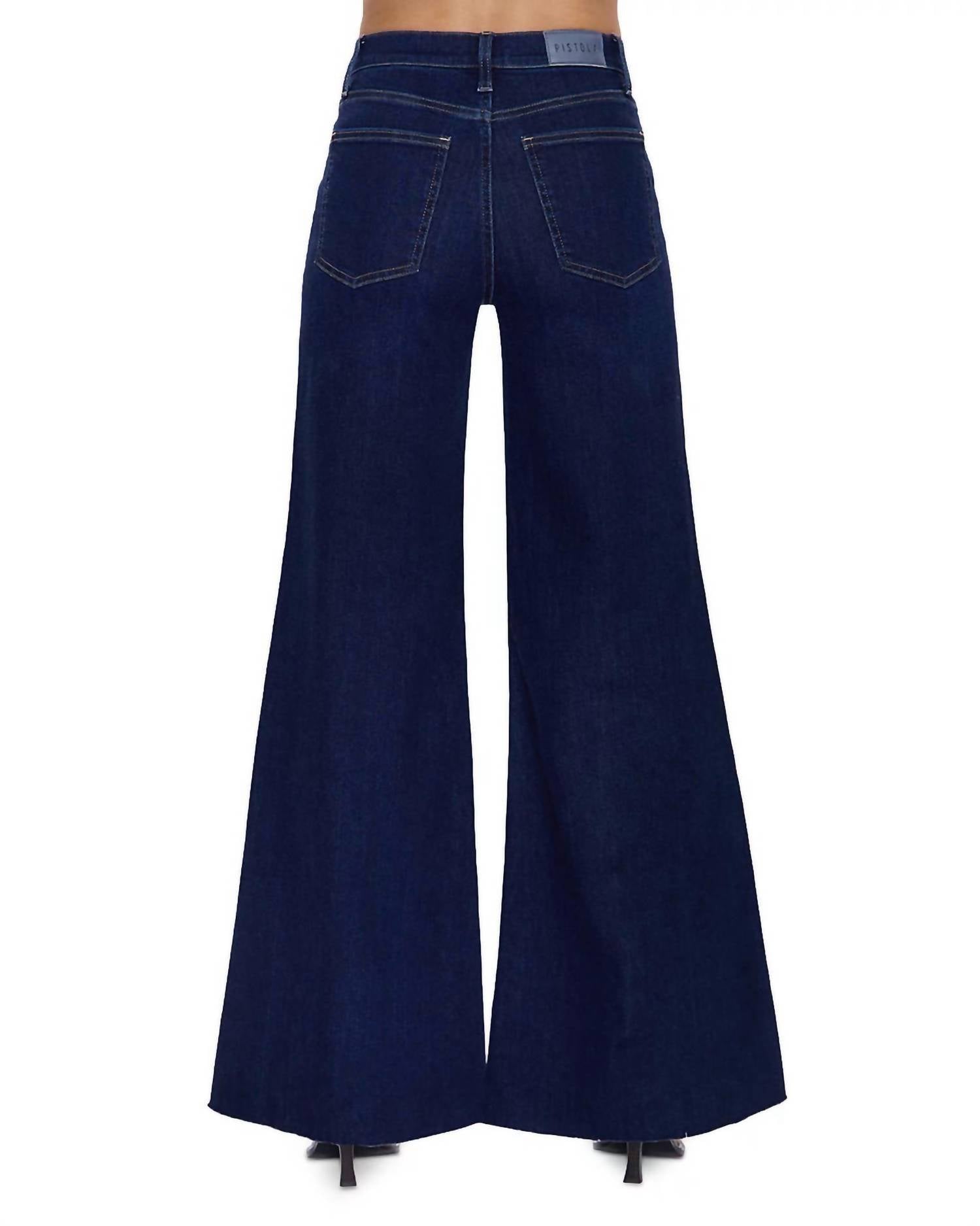 Discover the Izzy Mid Rise Wide Leg Jeans by PISTOLA, a trendsetter in the Tristesse dark blue wash. Offering a mid-rise with a 10.75" rise and 28.5" inseam, these jeans boast a regular fit that hugs through the thigh before falling into a vintage-inspired wide leg. Crafted from a comfortable cotton blend with textured patterning and playful contrast stitching, they're perfect for dressing up or down. Featuring a convenient button closure and pockets, these jeans exude versatility and are ideal for your spring holiday parties.