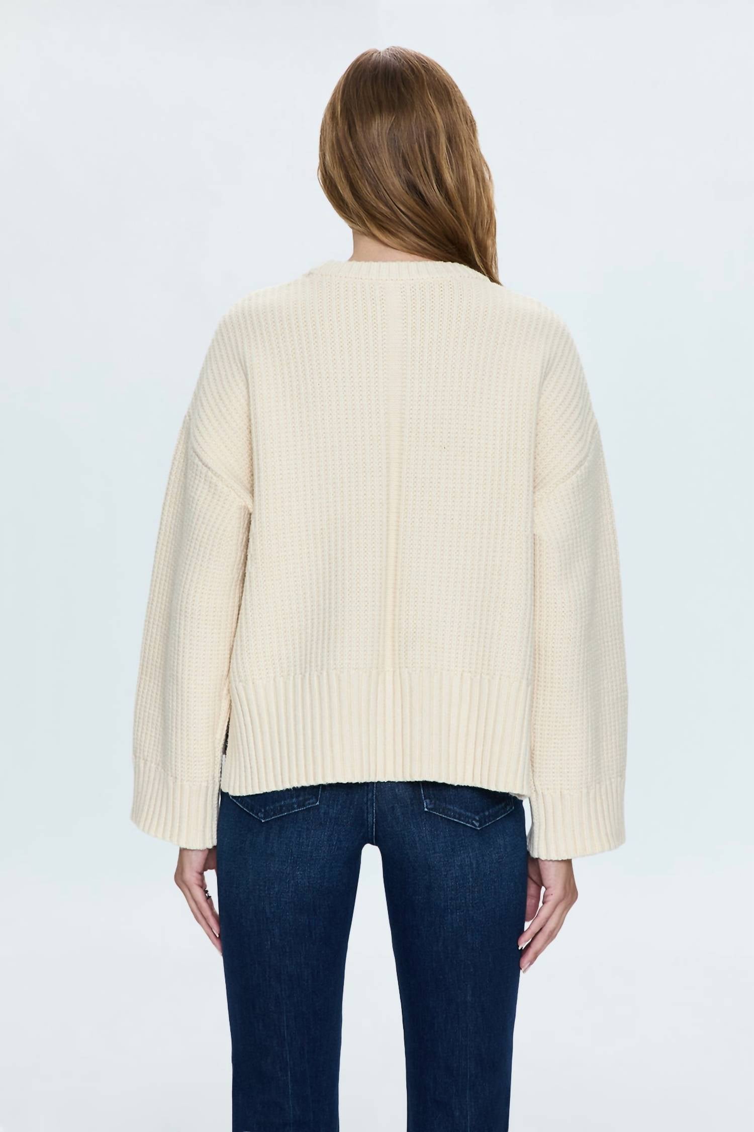 Experience the perfect blend of comfort and style with this trendy crew neck sweater, designed to effortlessly elevate your wardrobe. Pair it with your favorite denim and loafers for the perfect look. Introducing the Leigh Sweater by Pistola, a chic and timeless option in elegant ivory. This women's sweater features a solid pattern with a classic crewneck and long sleeves for a cozy fit. Designed as a pull-on garment, it ensures ease of wearing while maintaining a streamlined silhouette. Care instructions recommend hand washing and line drying to preserve its quality.